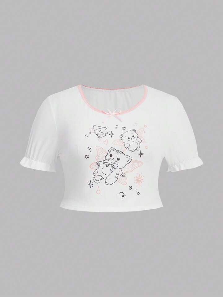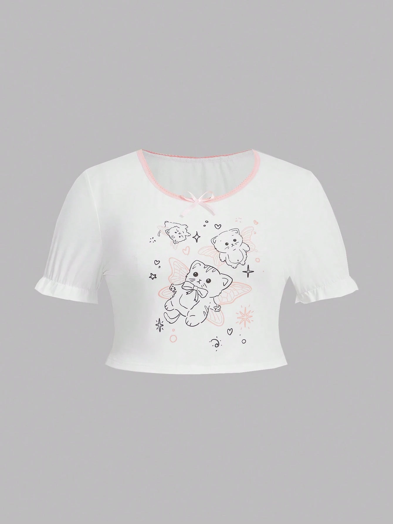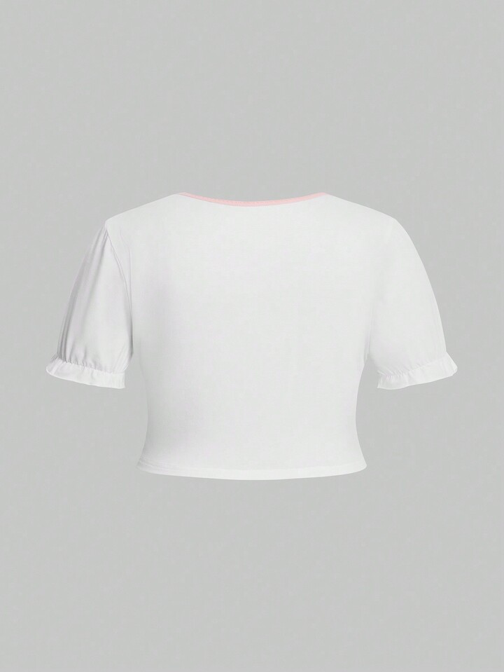Kawaii Plus T-Shirt À Liséré Contrastant Dessin Animé