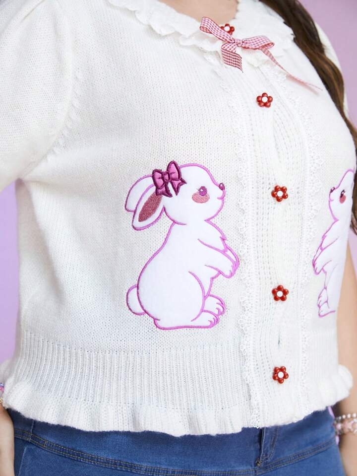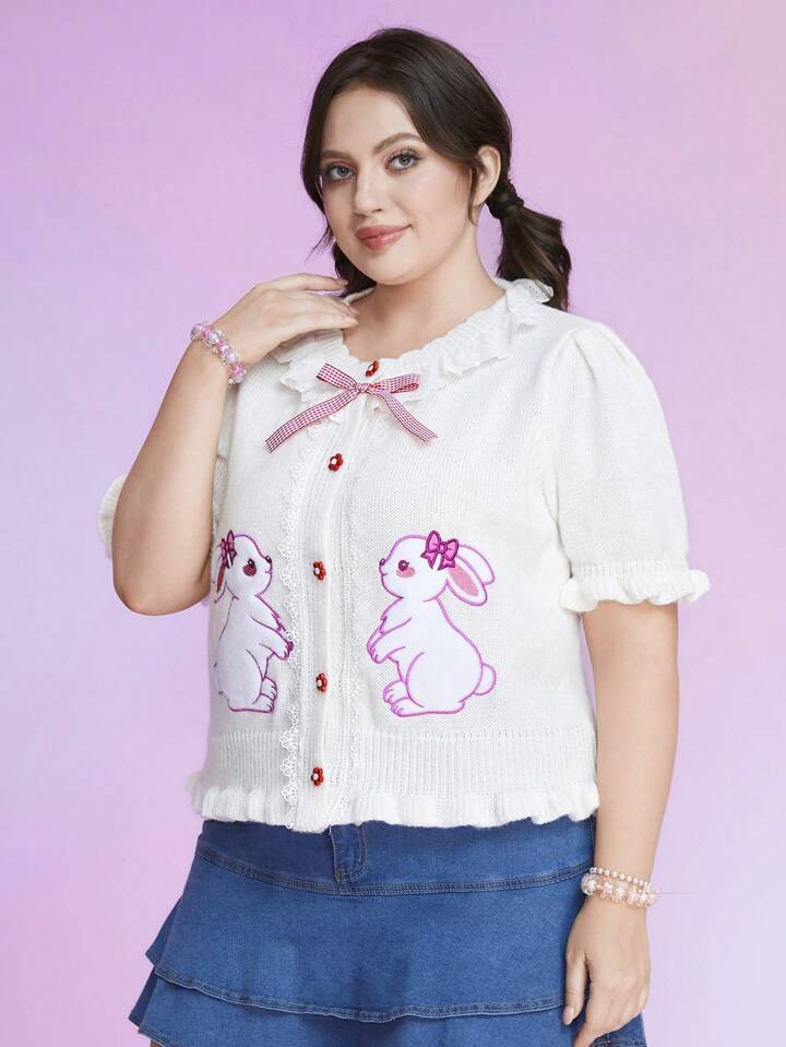 Kawaii Plus Cardigan Motif Dessin Animé Manches Bouffantes À Nœud Papillon