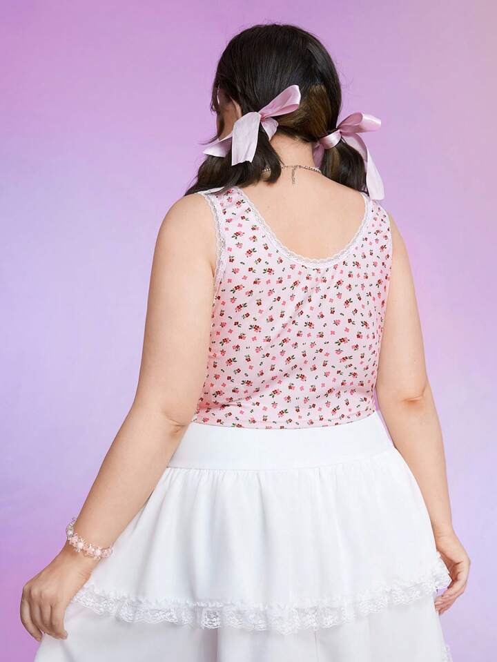 Kawaii Plus Top Sans Manches Imprimé Floral