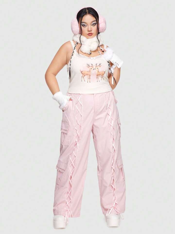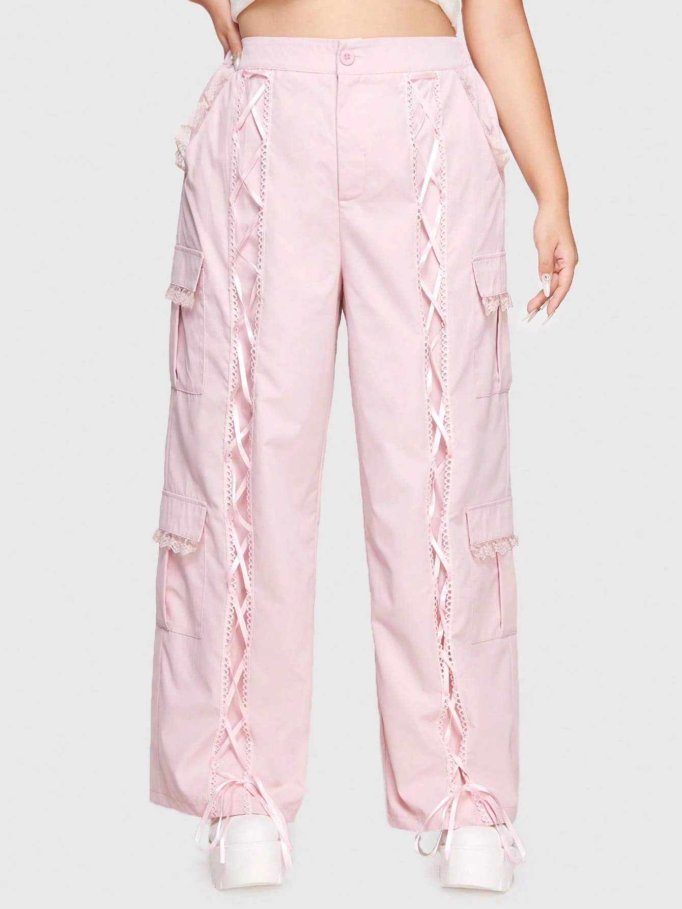 Kawaii Plus Pantalon Cargo À Lacets Poche À Rabat