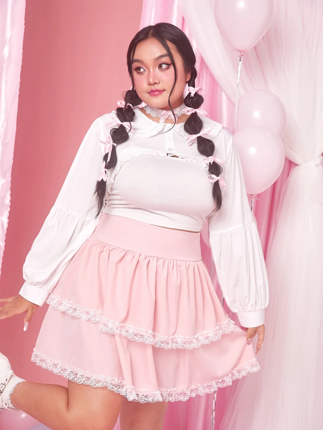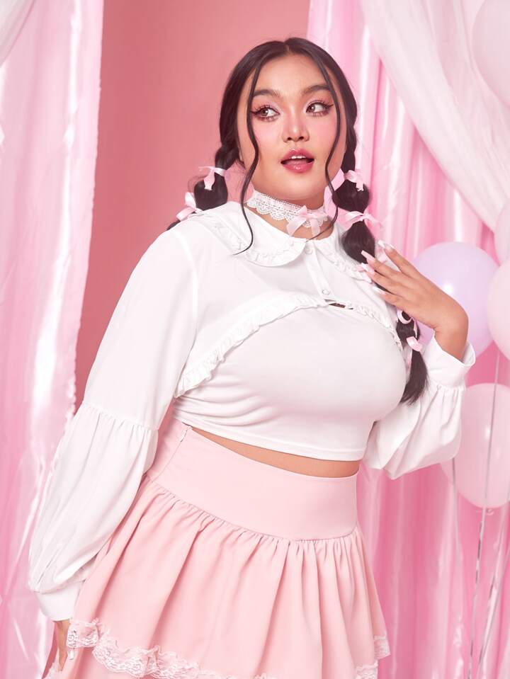 Kawaii Blouses grandes tailles Volants Avec boutons devant Casual Unicolore