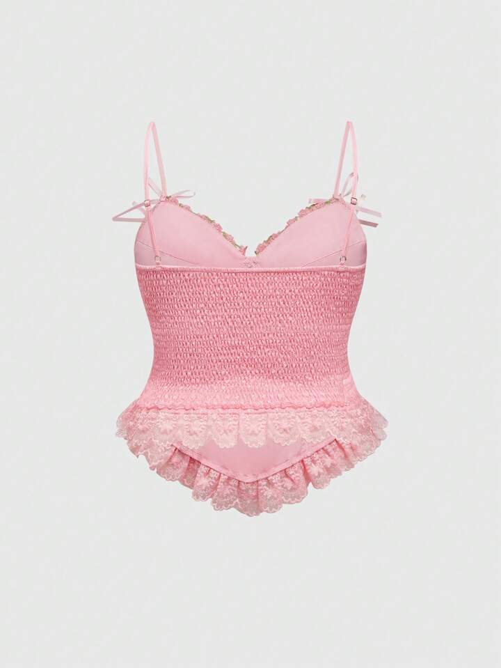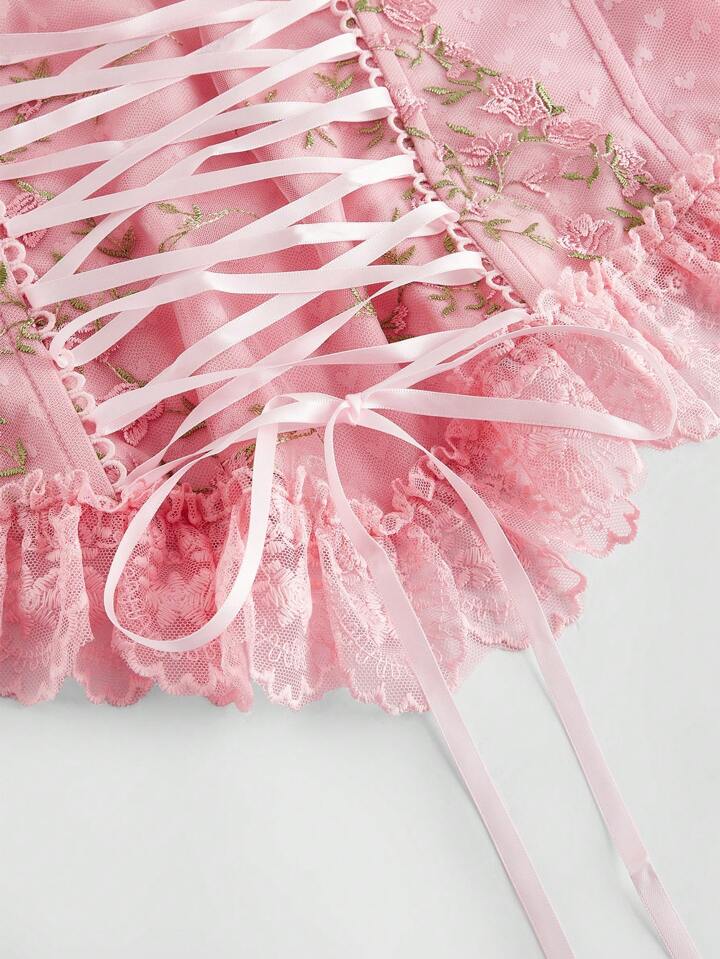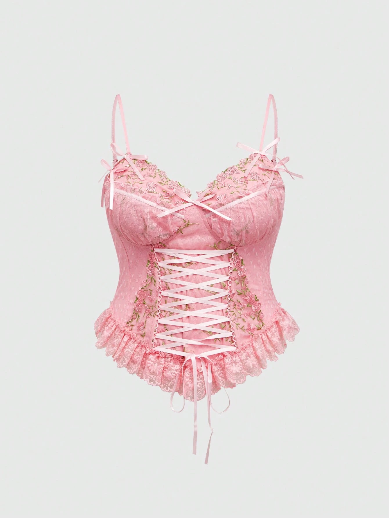 Kawaii Femmes grande taille Style rétro romantique de palais Dentelle brodée Bord fleuri Débardeur et Top croisé