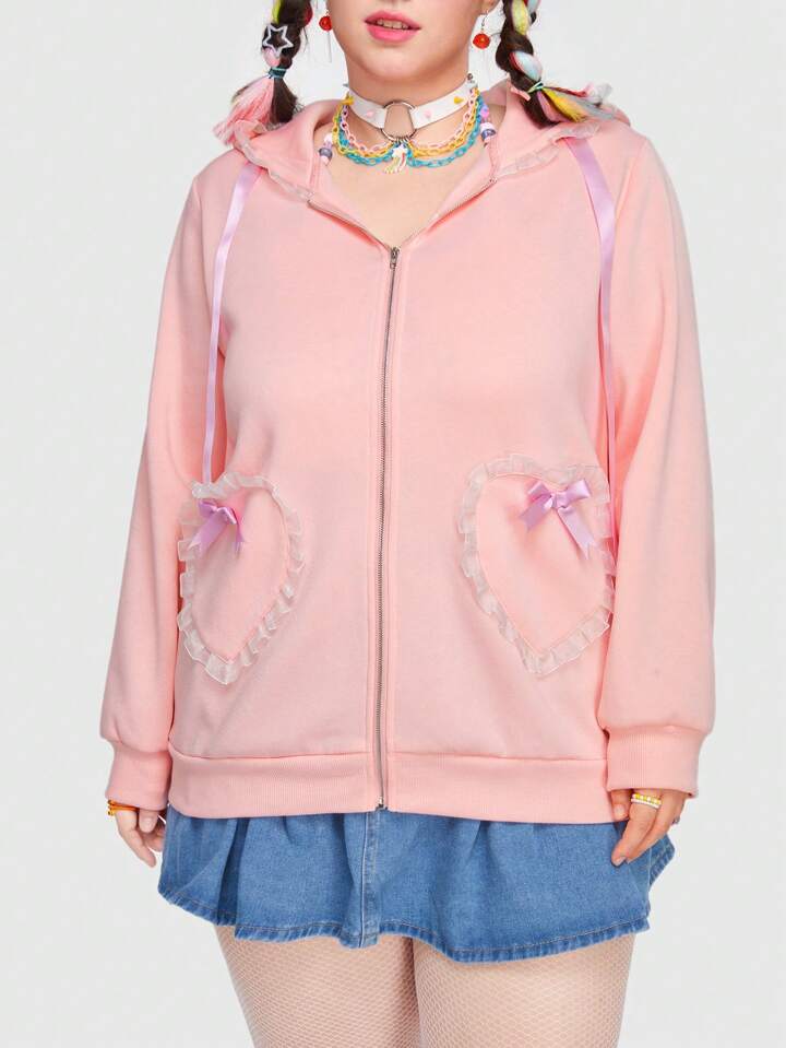 Kawaii Sweat Femme Grandes Tailles À Capuche Zippé Sur Le Devant