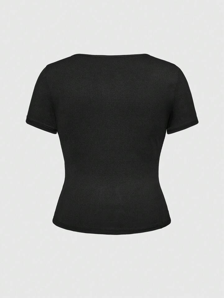 Kawaii T-shirt casual, manches courtes, encolure en cœur à volants, couleur unie, grande taille, été
