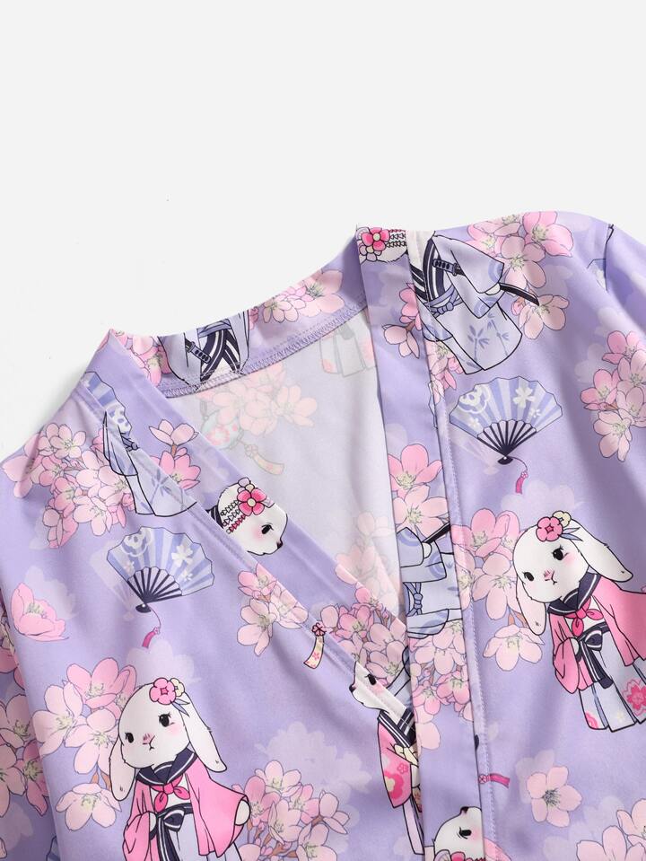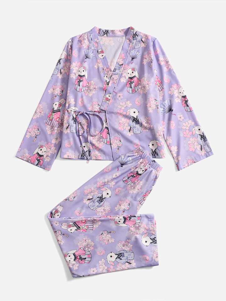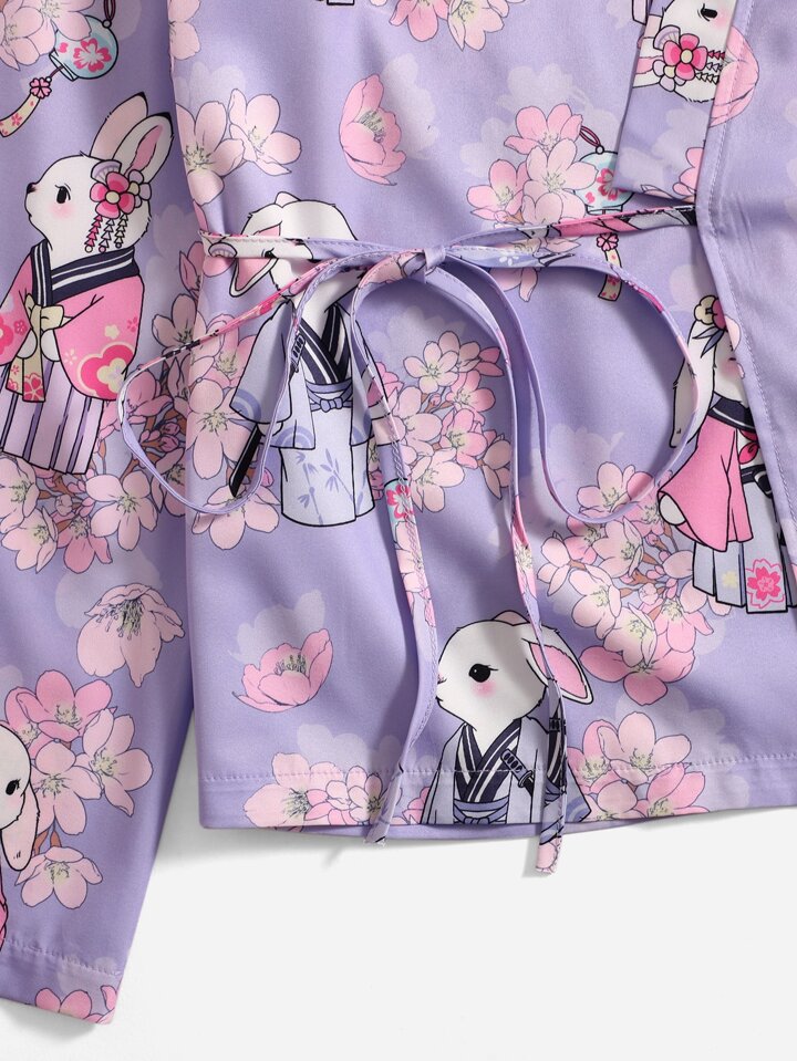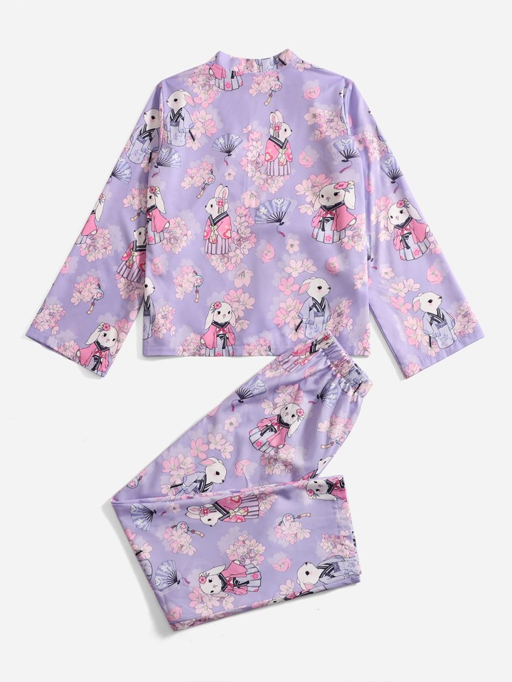 Kawaii Ensemble de pyjama lapin fleuri à nœud