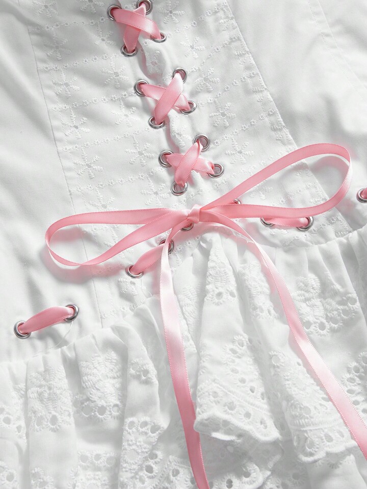 Kawaii Robe mini de style palais rétro avec épaules dénudées et effet galbant à la taille