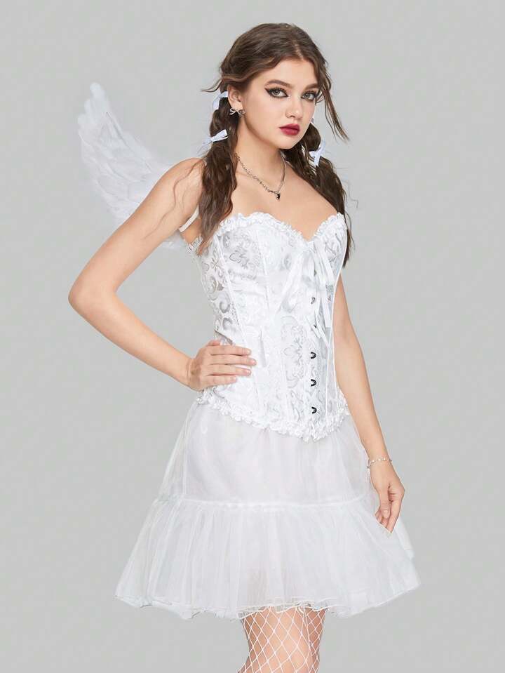 Kawaii Corset Volute En Jacquard À Plis À Lacets overbust