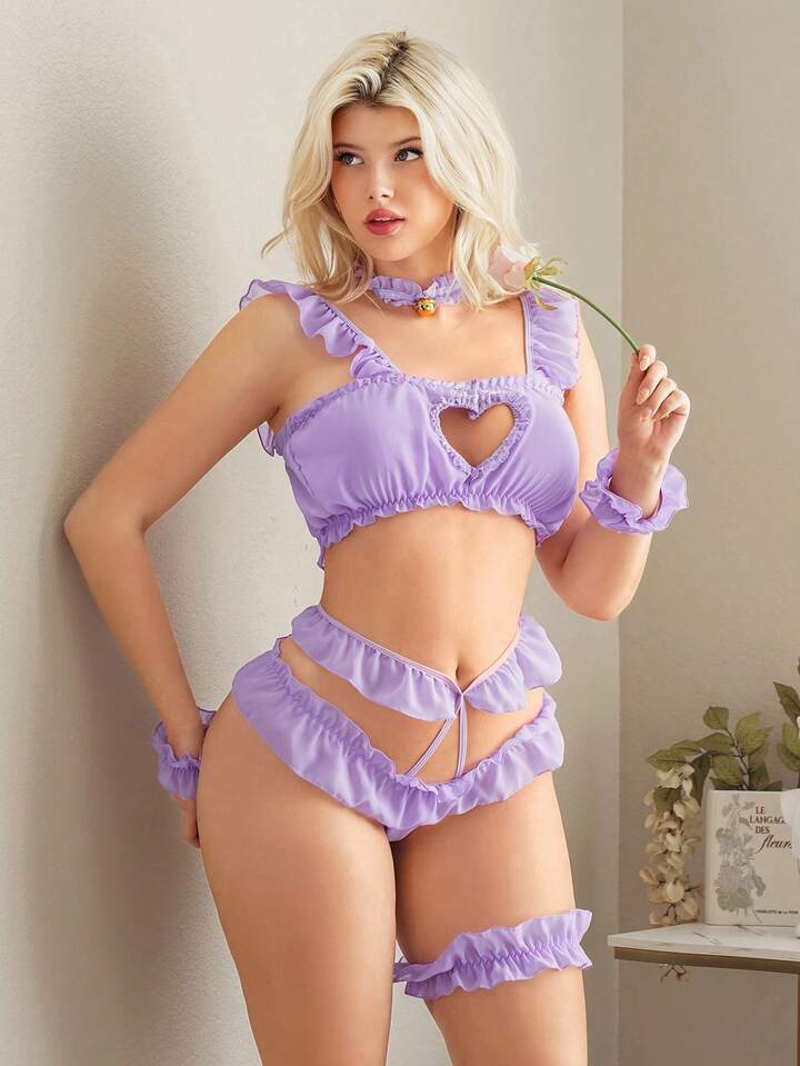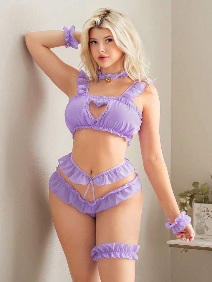 Kawaii Ensemble de lingerie sexy avec Ras-du-cou, bracelets de cheville et 2 menottes de poignet, pour la Saint-Valentin