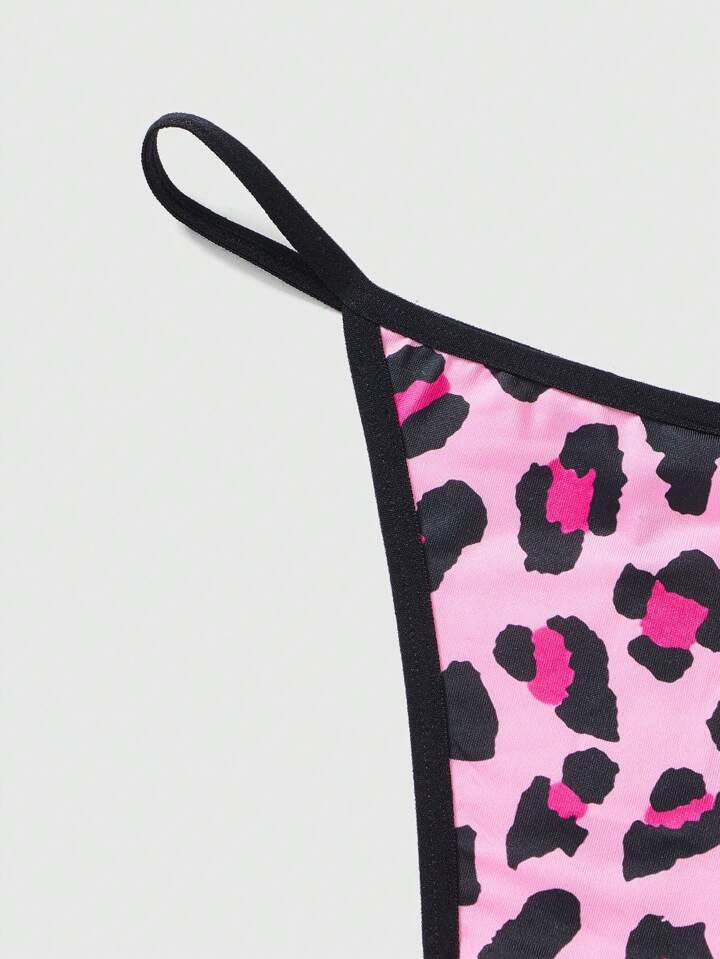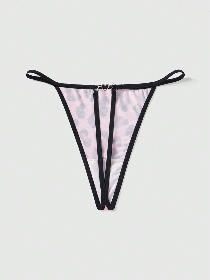 Kawaii Slip En Forme De Tanga En Forme De Cœur Imprimé Léopard Rose Shibuya Gal
