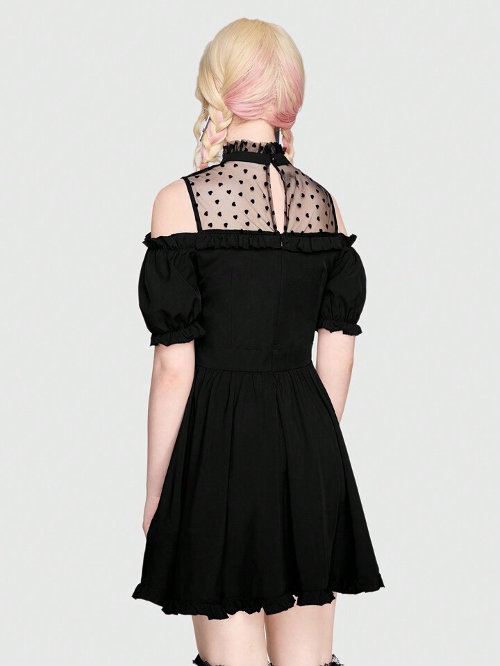 Kawaii Robe À Manches Bouffantes En Maille Épaule Froide Avec Noeud Sur Le Devant