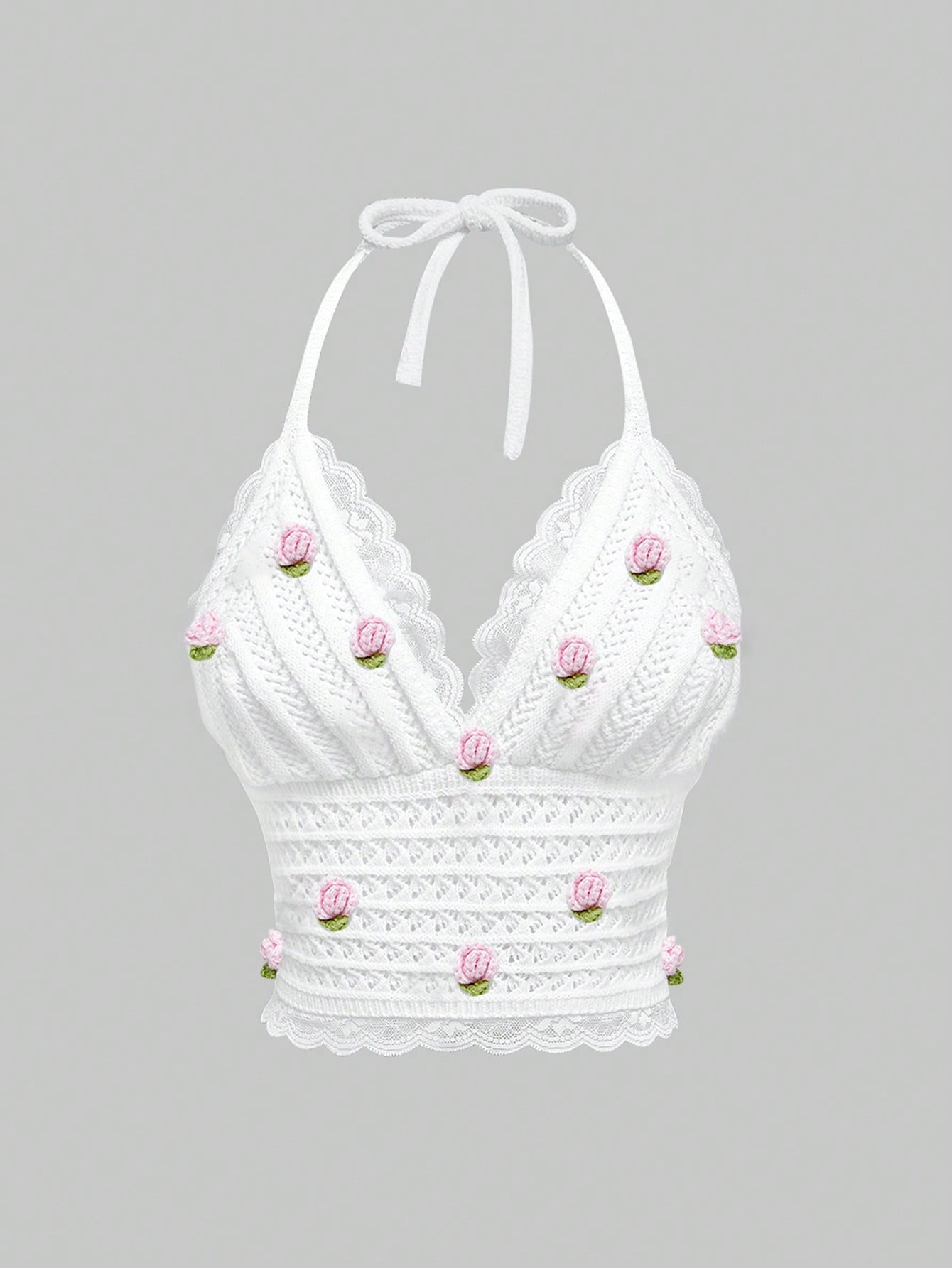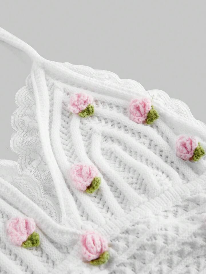 Kawaii Joli pull tricoté 3D à fleurs pour femmes, tenues de vacances printanières