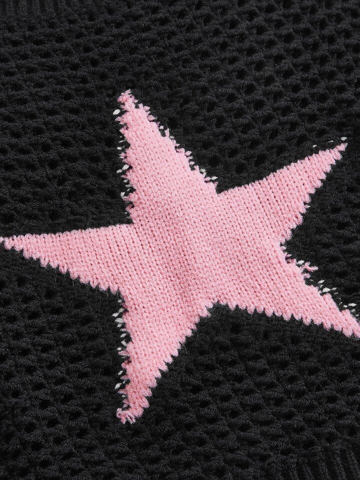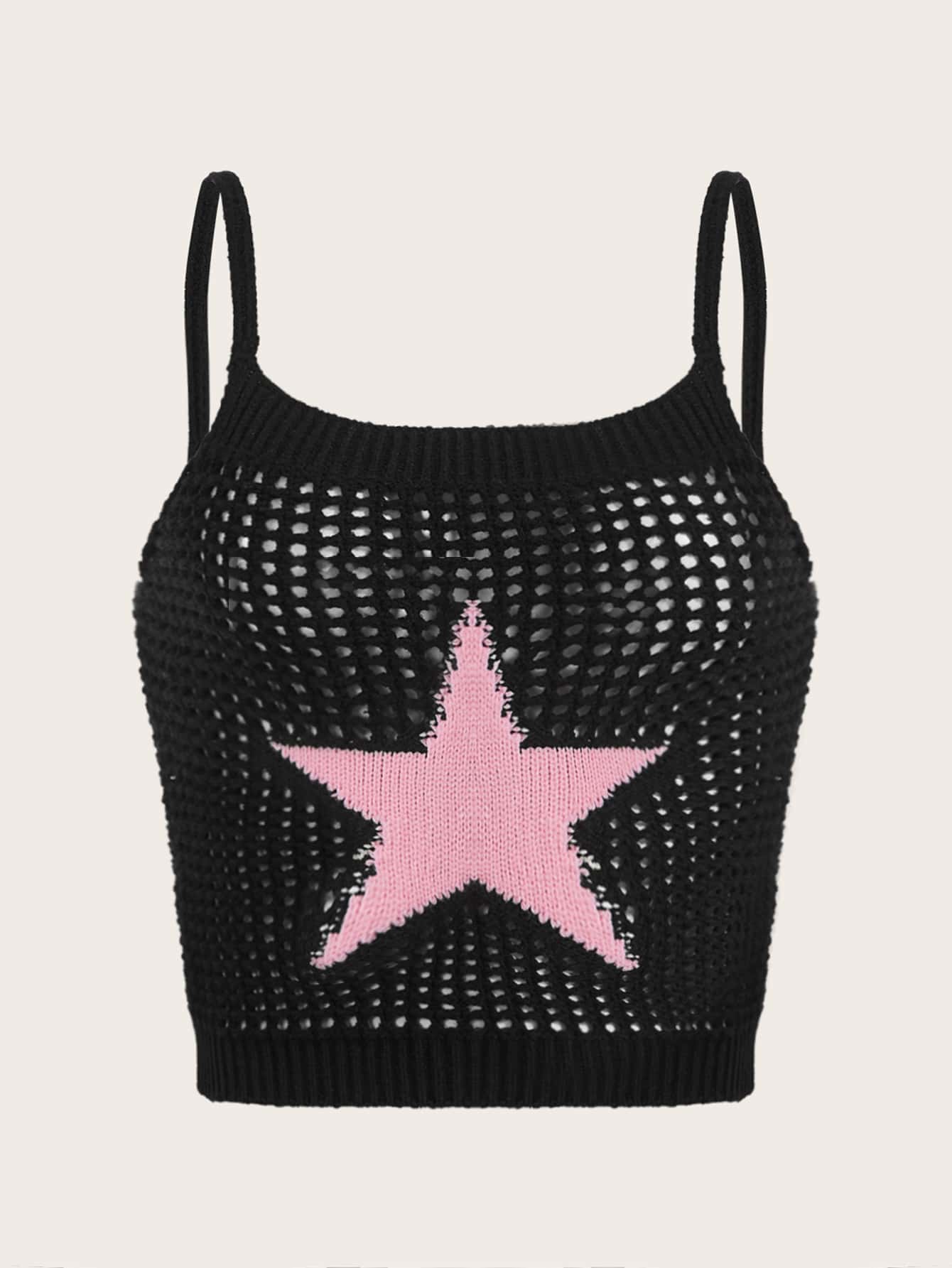 Kawaii Top en tricot à fines brides à motif étoile ajouré