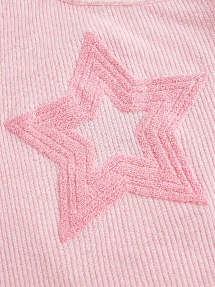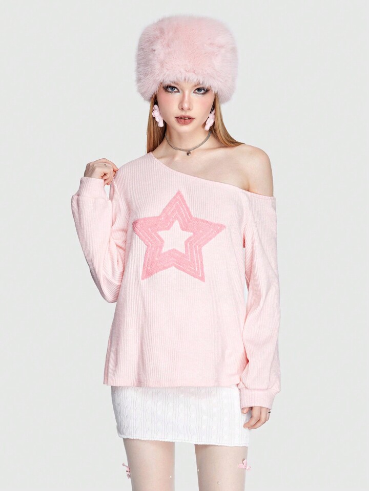 Kawaii T-shirt Imprimé Étoile À Col Asymétrique