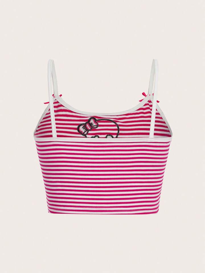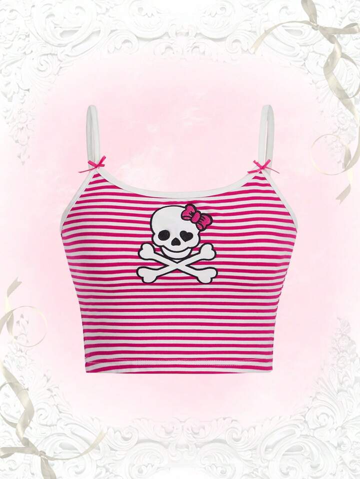 Kawaii Top À Fines Brides À Rayures Imprimé Tête De Mort