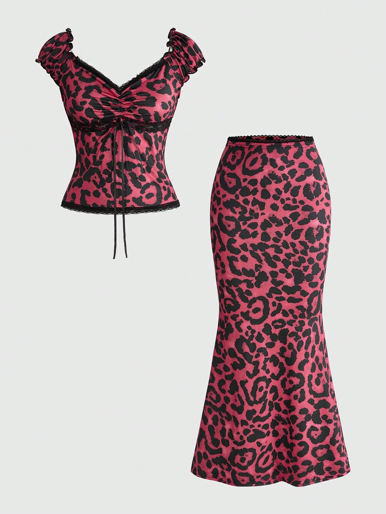 Kawaii Tenues d'été pour femmes : Ensemble 2 pièces slim, Top + jupe, avec décor de nœud papillon, patchwork de dentelle à pois contrastés