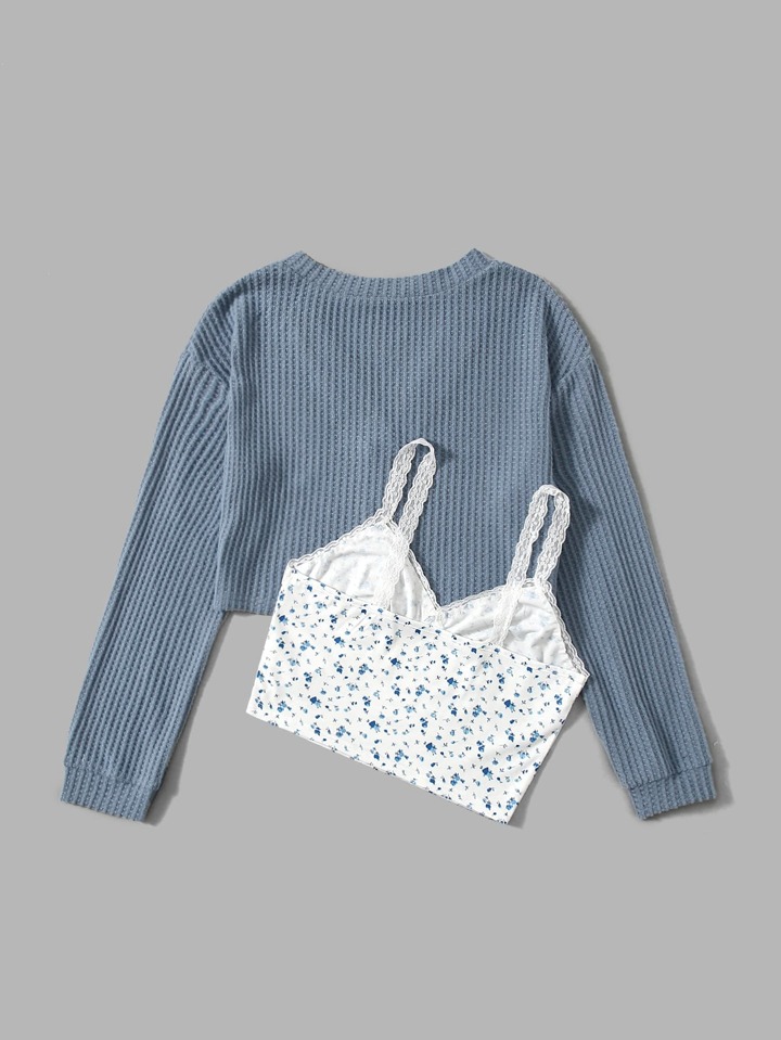 Kawaii Ensemble Top avec camisole à fleurs dainty et veste court