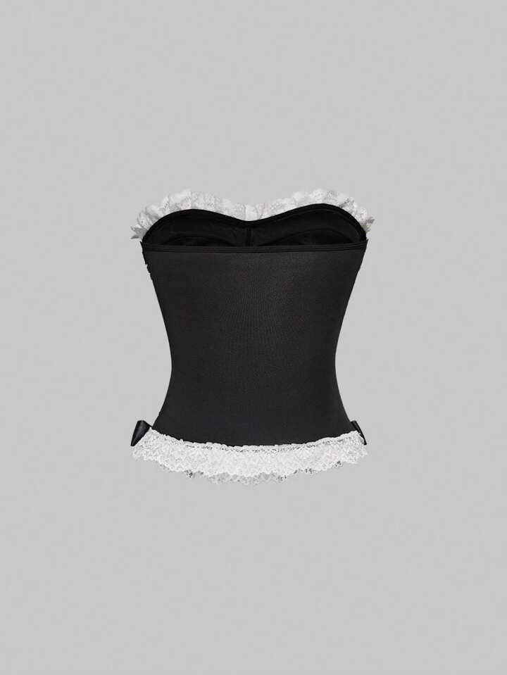 Kawaii Top licou avec gros nœud de style vintage victorien et dentelle pour femmes