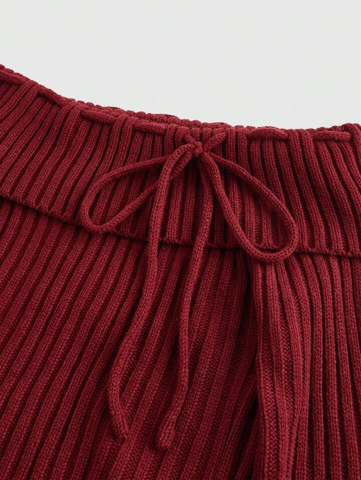 Kawaii Pull moulant avec nœud papillon rouge vin à épaules dénudées pour le Nouvel An
