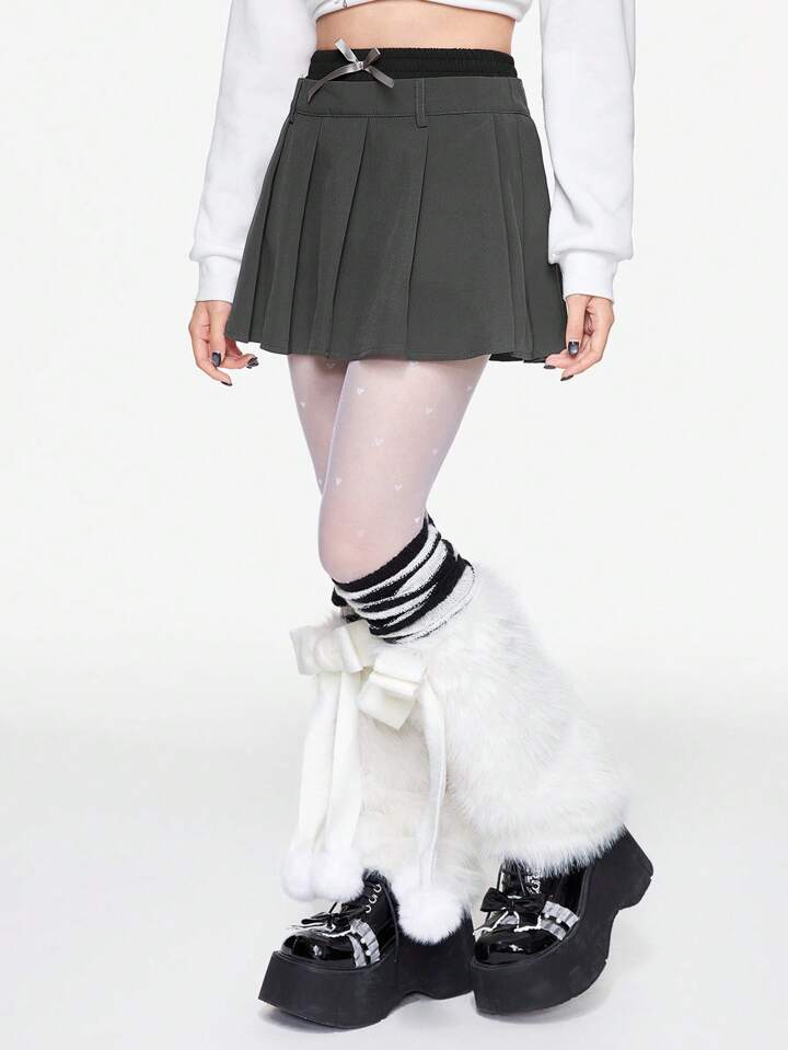 Kawaii Jupe mini plissée style Y2K preppy 2 en 1 avec éclair