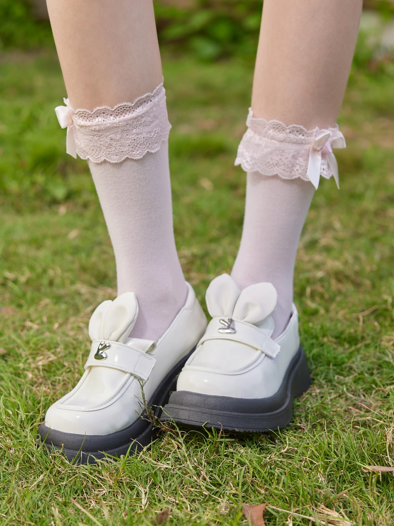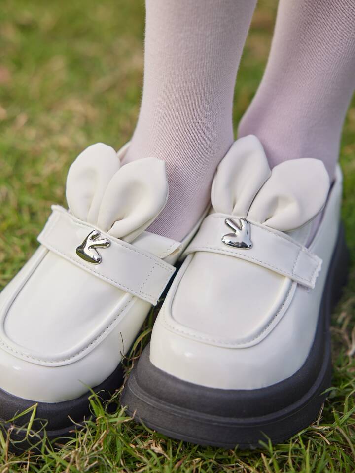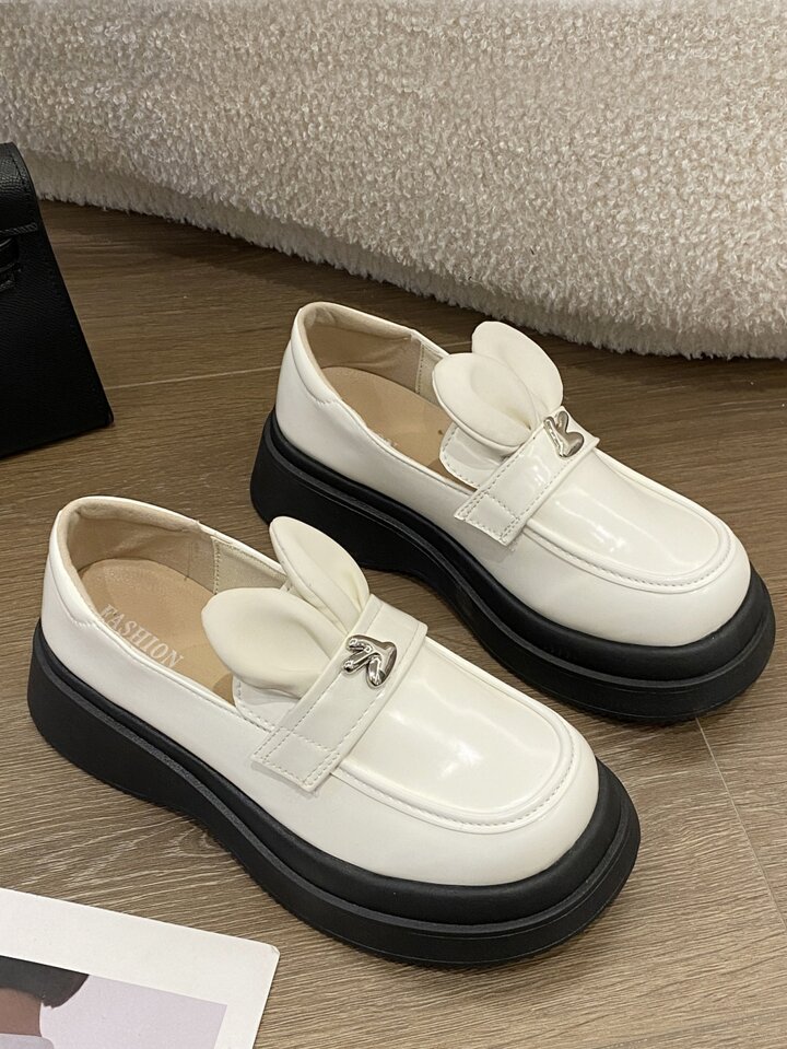 Kawaii Femme À Fermeture Autoagrippante Design À Détail En Métal Mocassins Preppy Plate-Forme Chaussures Blanc