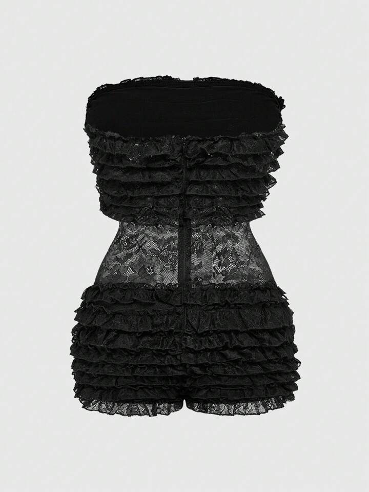 Kawaii Combinaison simple avec empiècement en dentelle pour femmes, décontractée pour les vacances