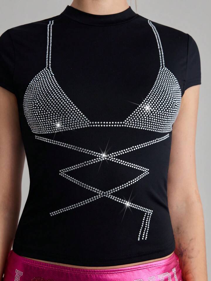 Kawaii Hauts court ajustés ornés de strass à la mode pour femmes, été