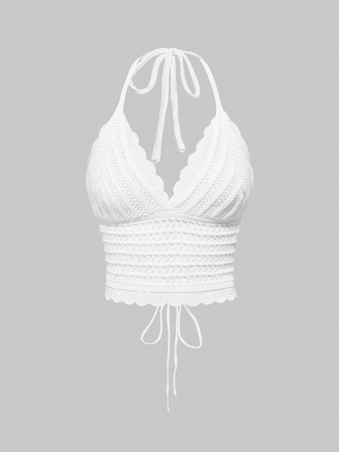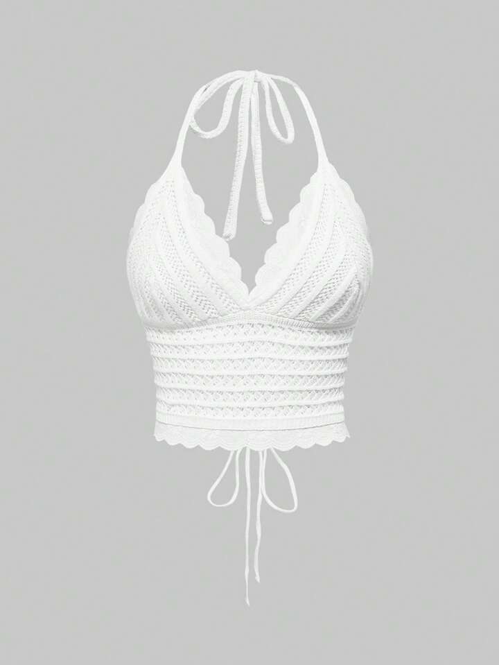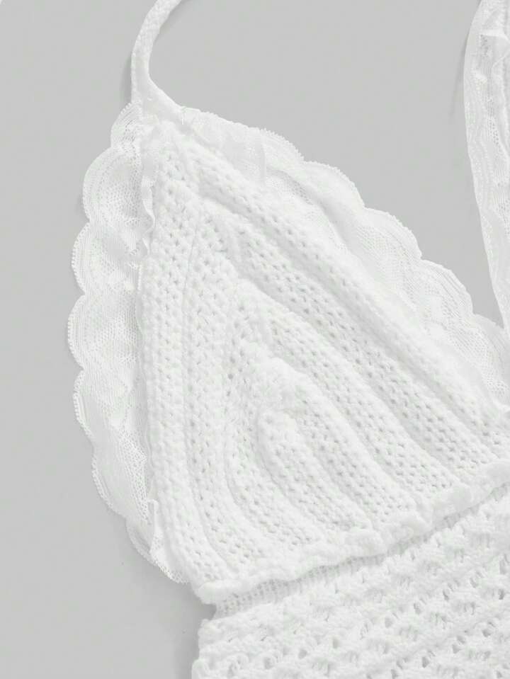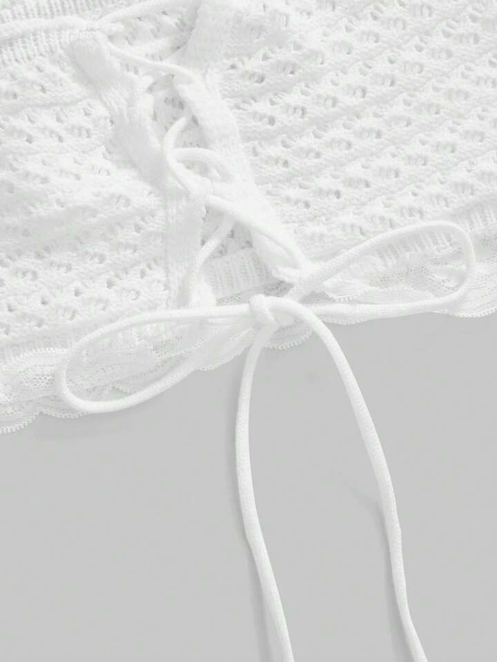 Kawaii Top basique en tricot à col ras-du-cou avec bordure en dentelle pour femme, tenue de vacances de printemps mignonne