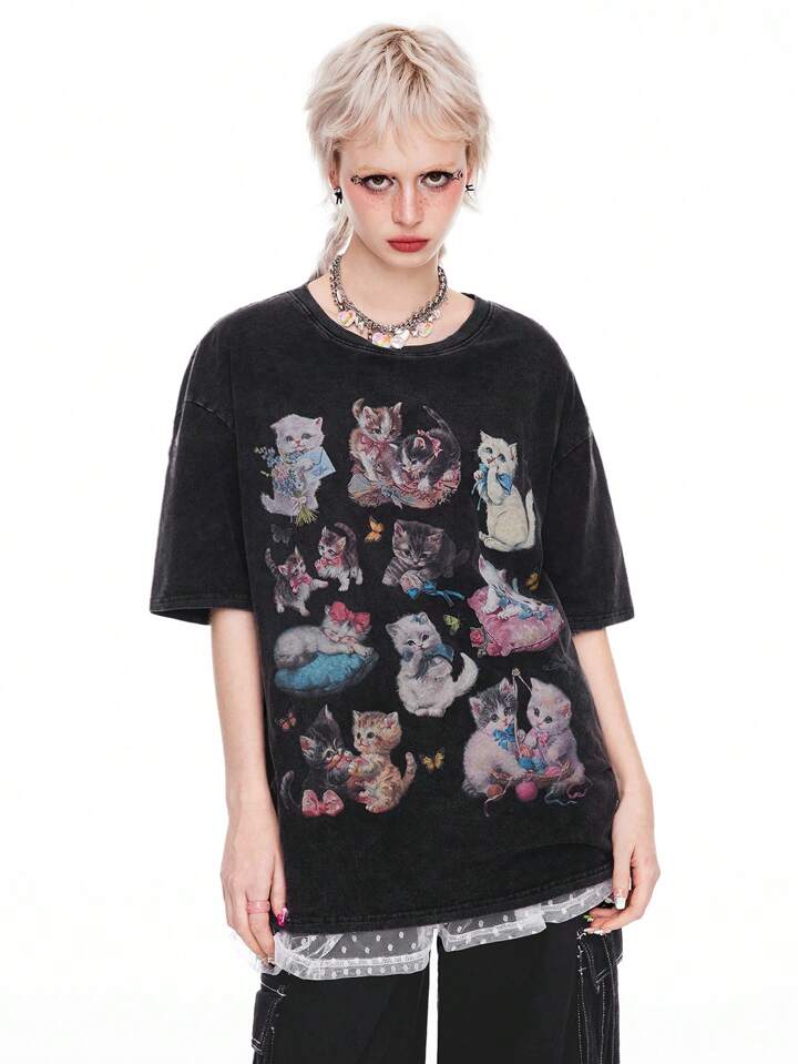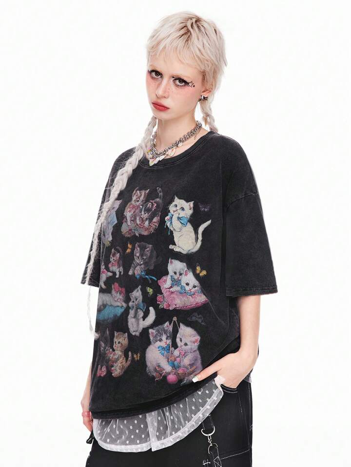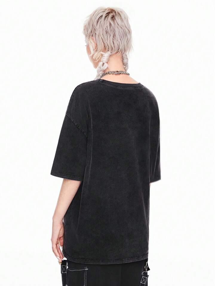 Kawaii T-shirt oversize graphique "Weird Girl" lavé à l'acide pour femmes