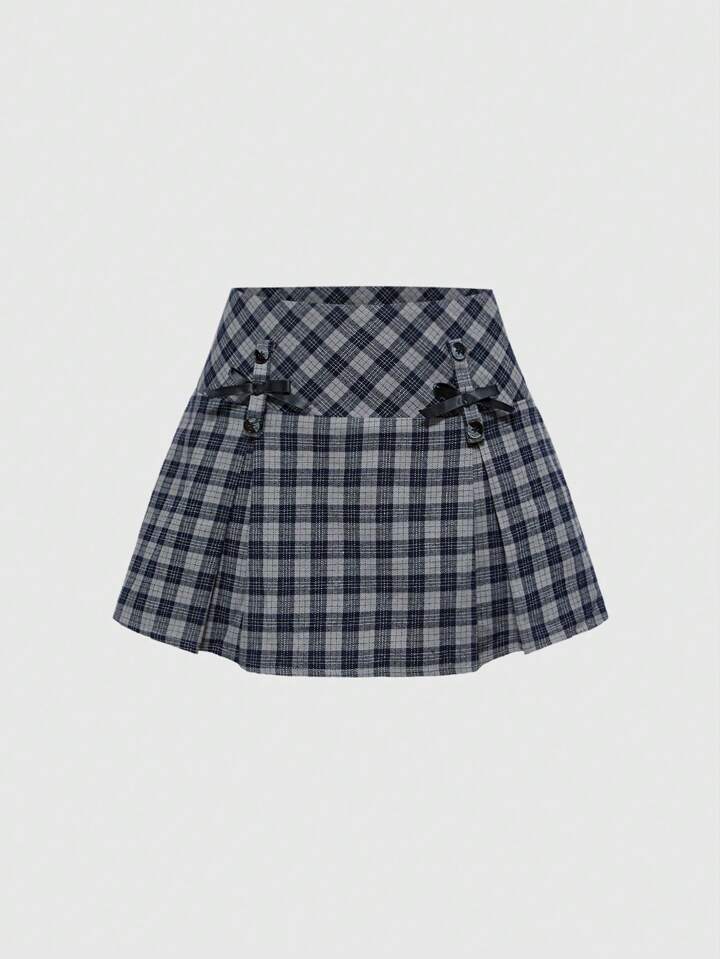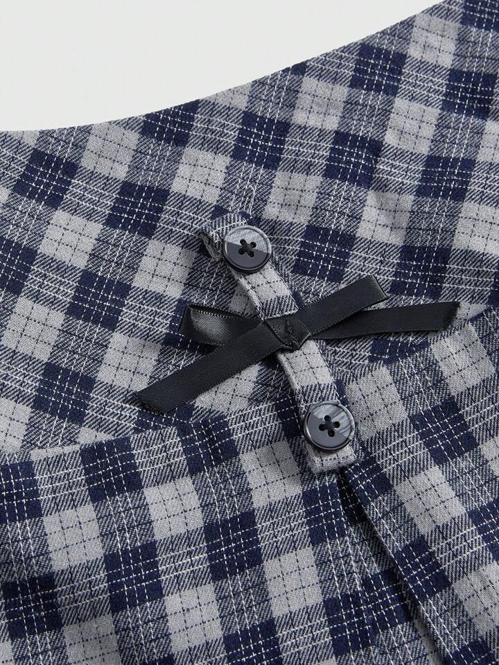 Kawaii Jupe mini évasée décontractée à carreaux avec nœud pour femme, été