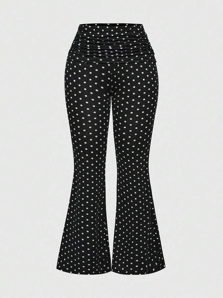 Kawaii Pantalon évasé ajusté à pois pour femme, style Y2K, taille resserrée, pantalon évasé à la mode