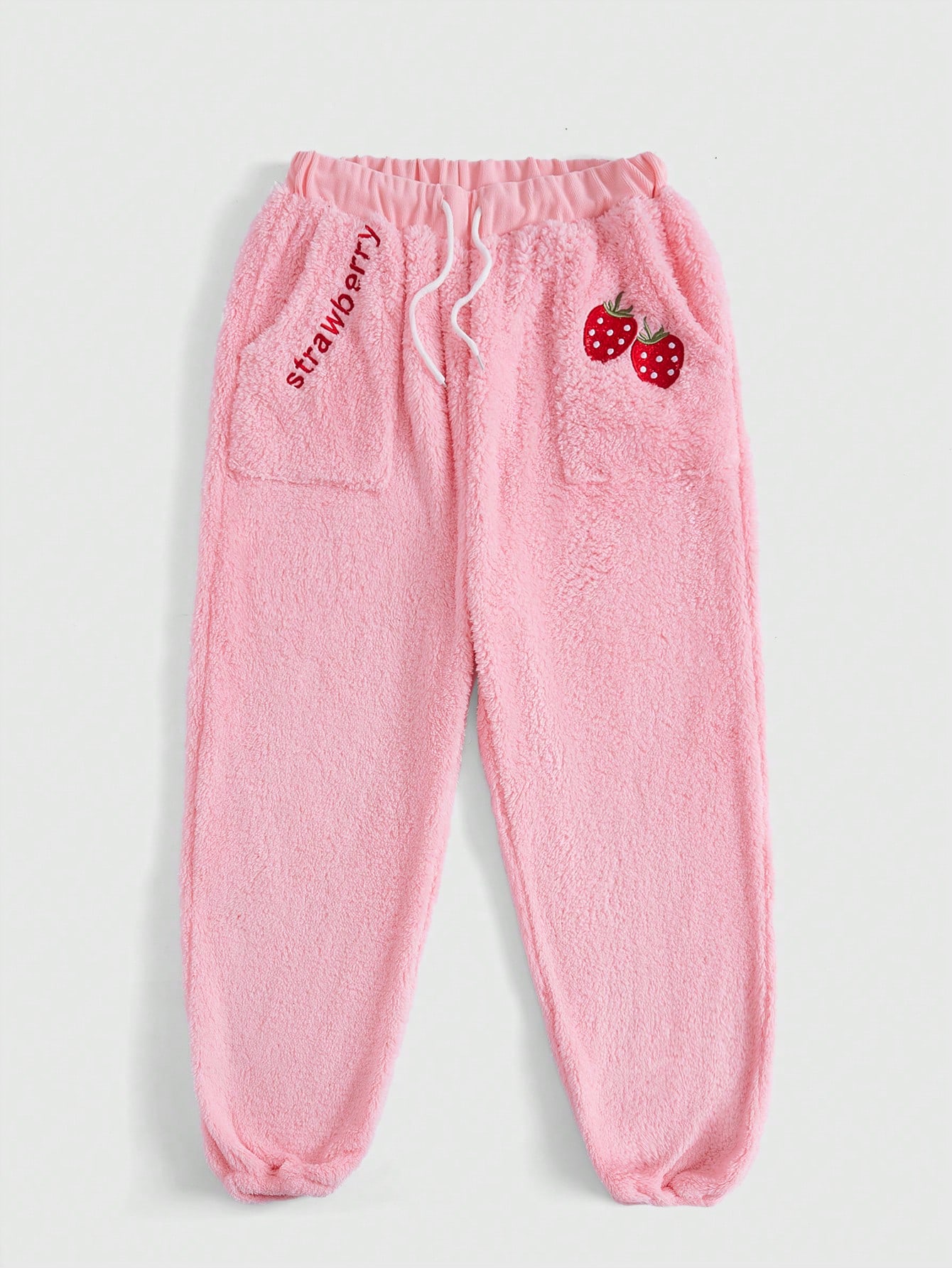 Kawaii Pantalon Long À Taille Élastique Brodé De Fraises Et De Lettres Pour Femmes