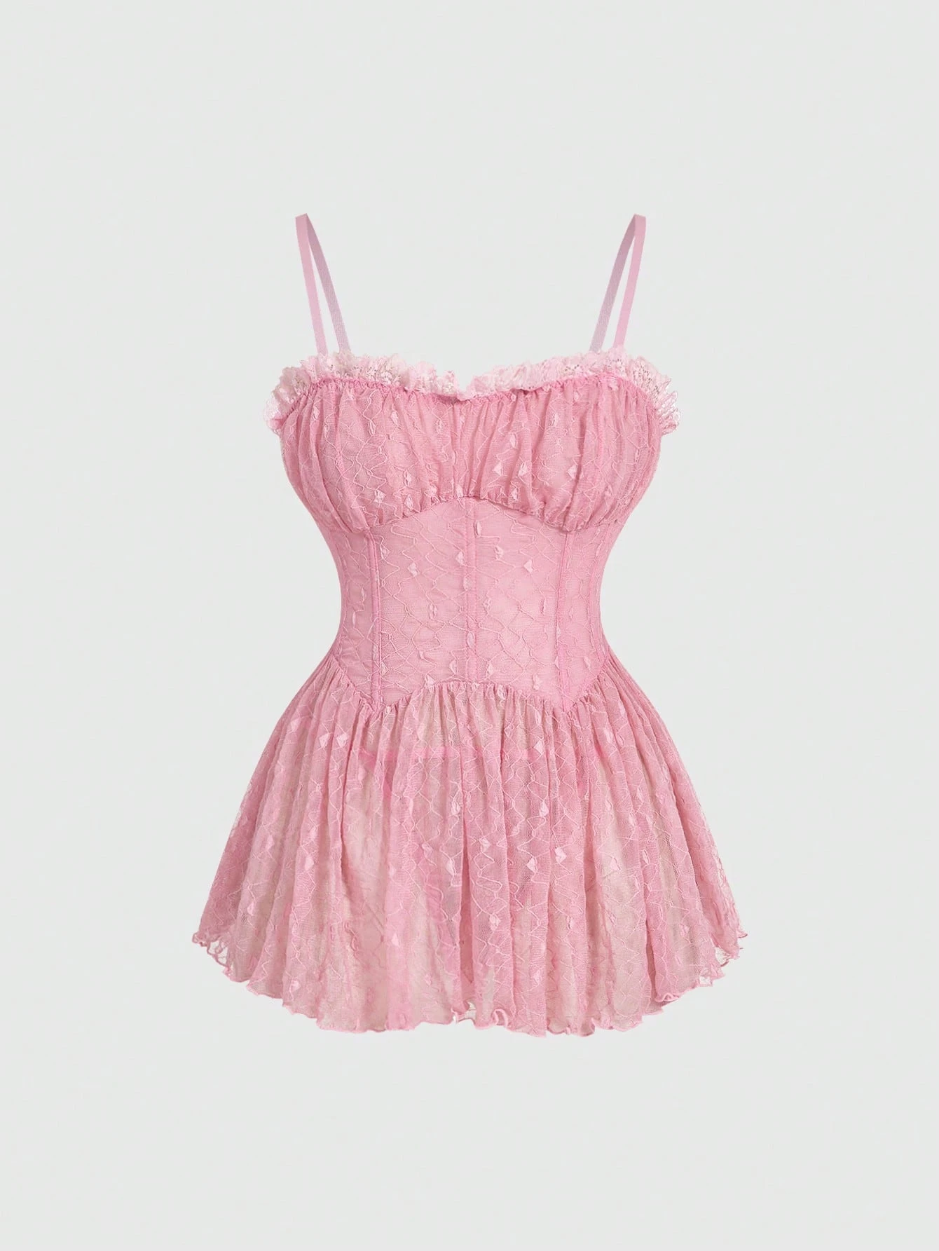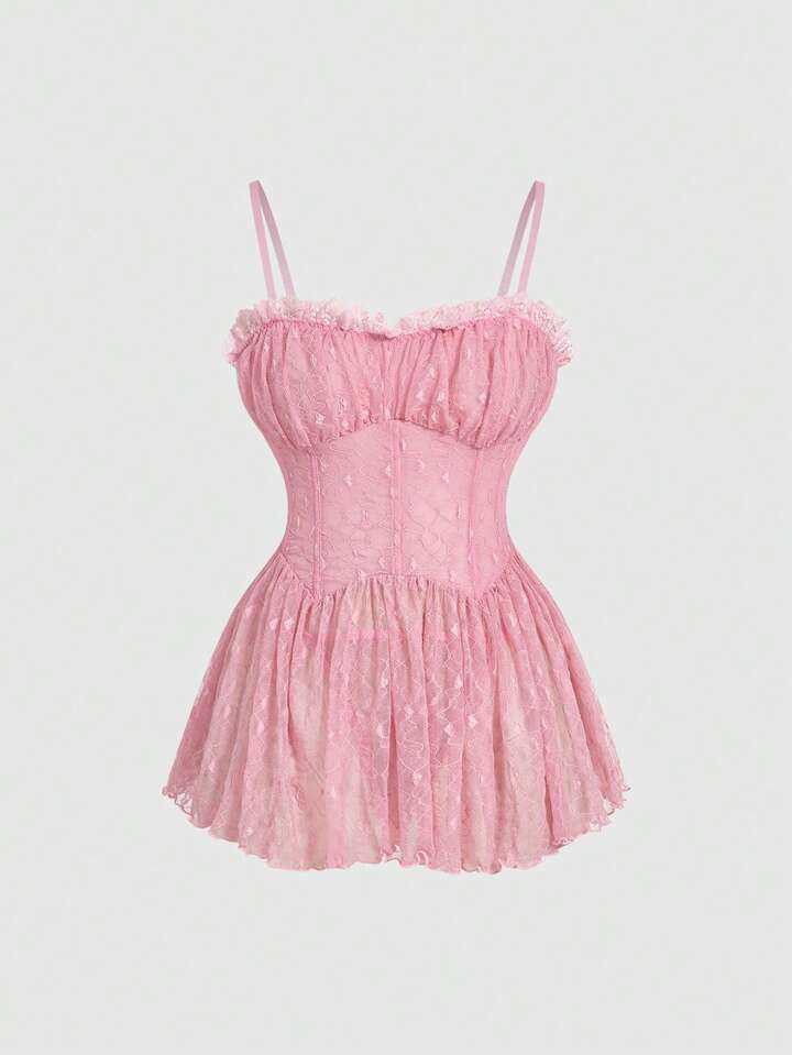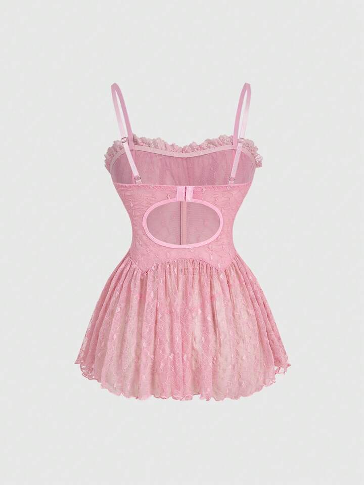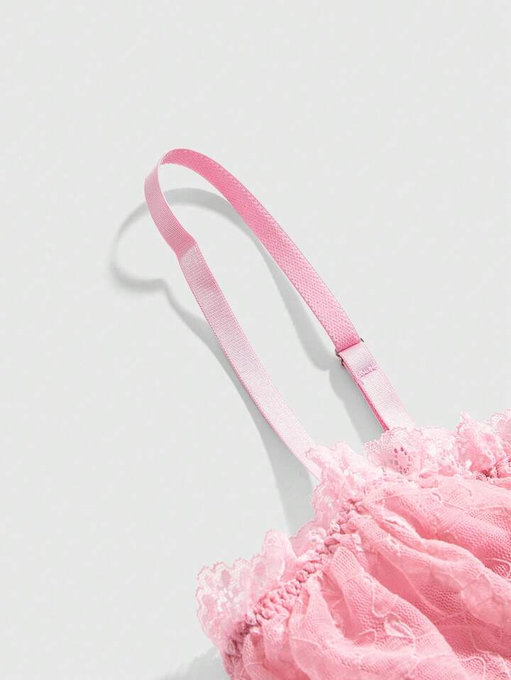 Kawaii Ensemble de sous-vêtements de nuit sexy pour femmes avec jupe sans couture à bordure en dentelle en forme de cœur de poupée