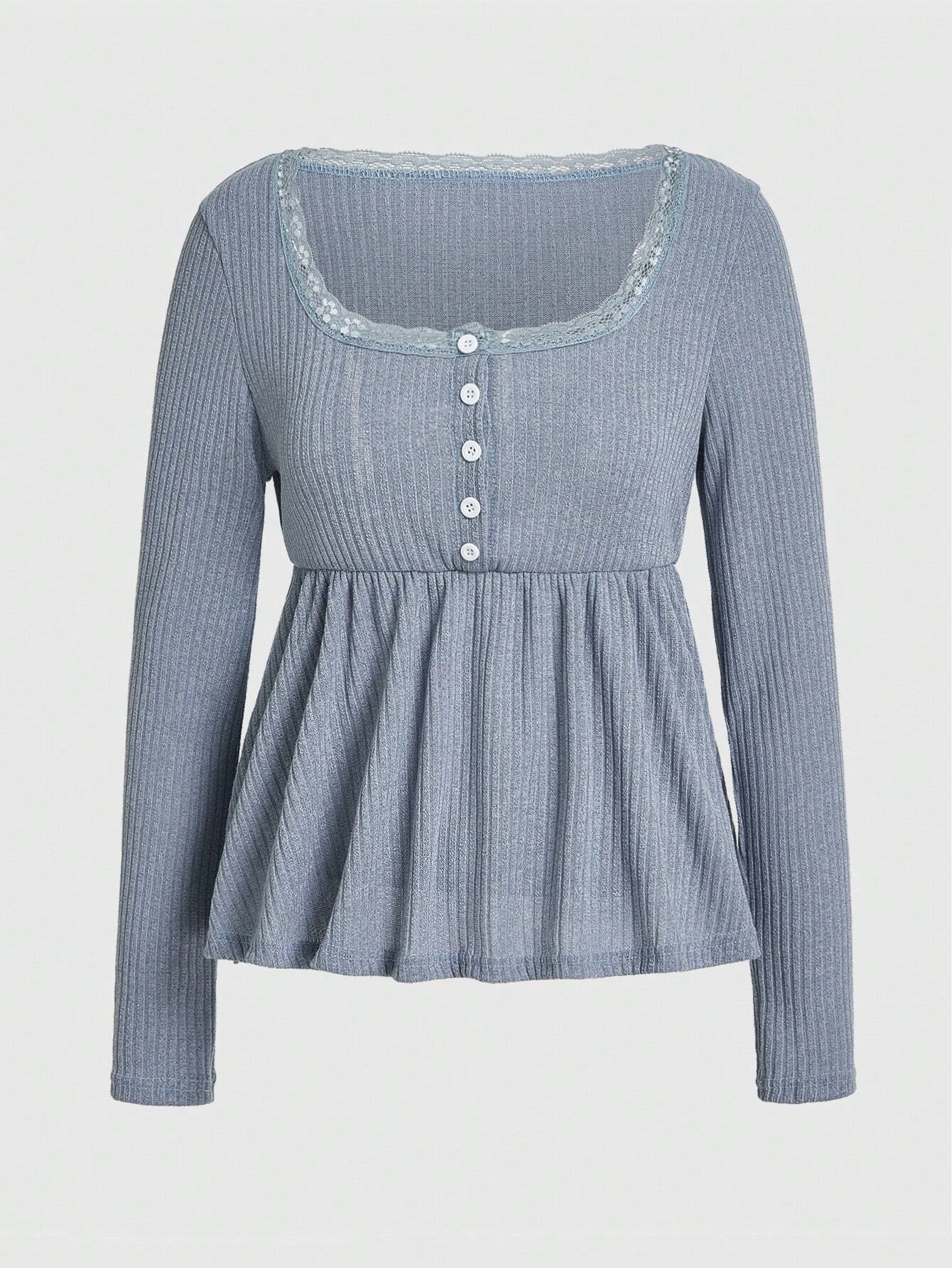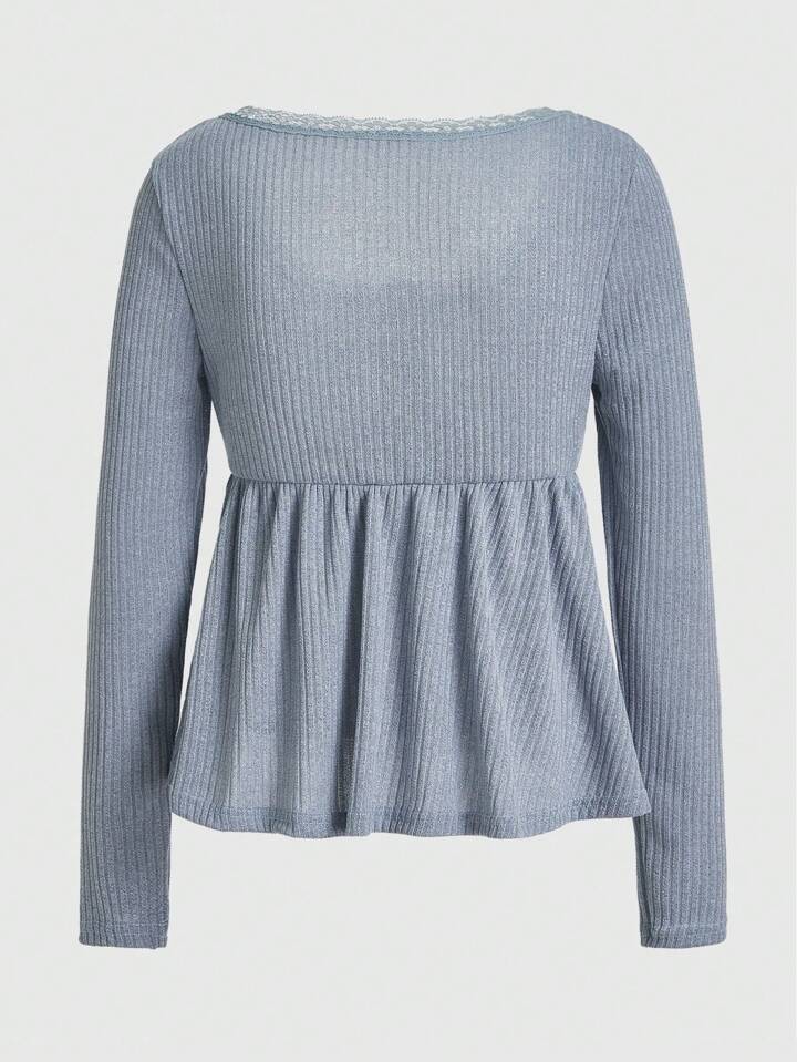 Kawaii T-shirt À Manches Longues Avec Ourlet Parapluie Et Dentelle Douce Pour Femmes