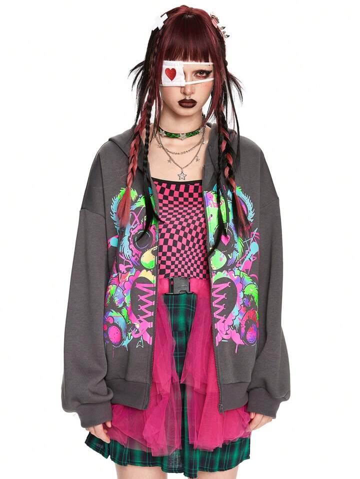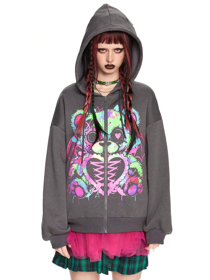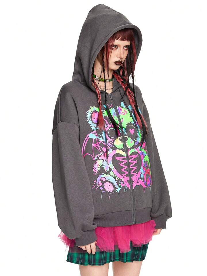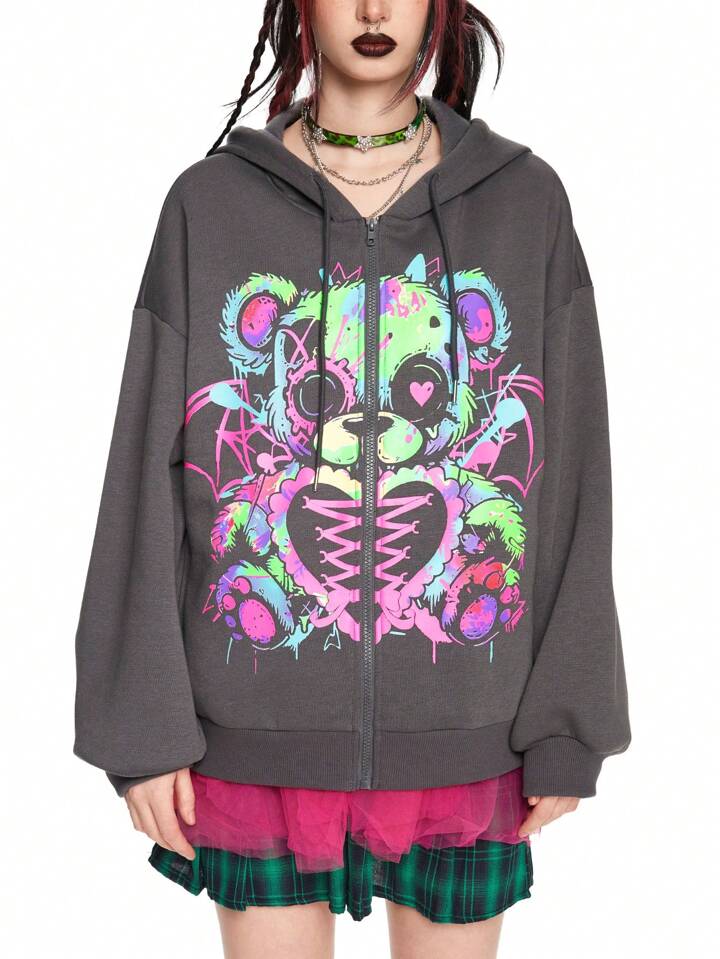 Kawaii sweat-shirt à capuche avec imprimé d'ours aux ailes, style Y2K horreur, pour femmes