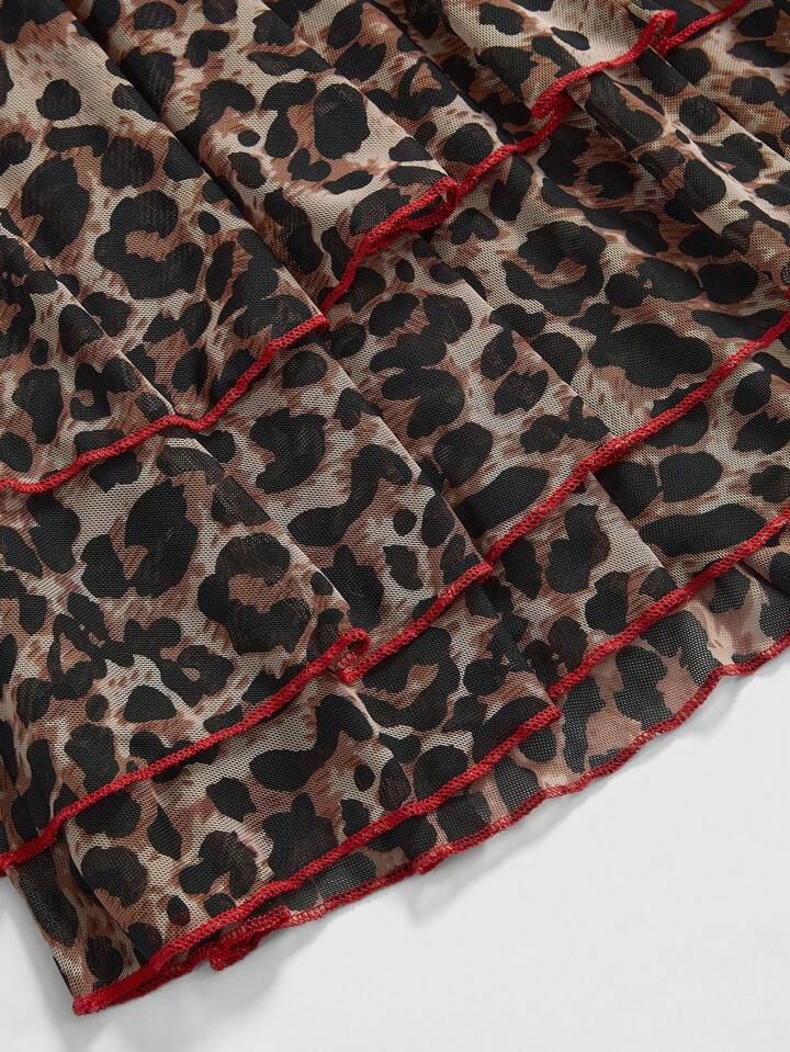 Kawaii Robe mini avec nœud papillon rouge et imprimé léopard dans le style gyaru/gal sexy de Shibuya des années 2000 pour femmes