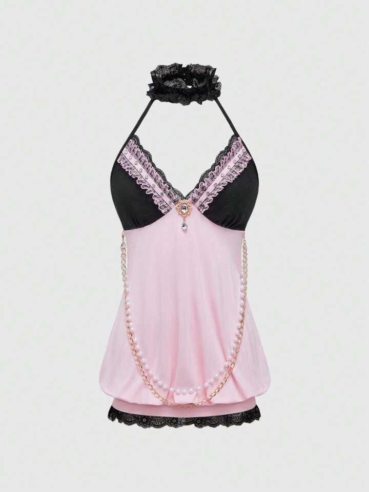 Kawaii Robe mini à chaîne et col Ombré sexy style Gyaru Shibuya pour femmes