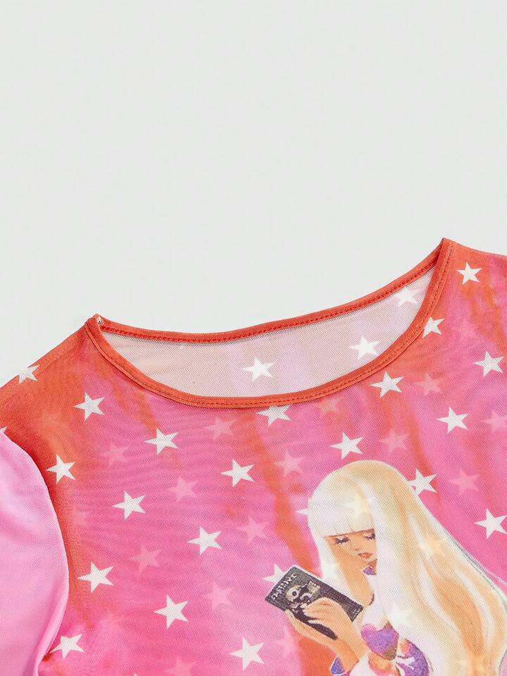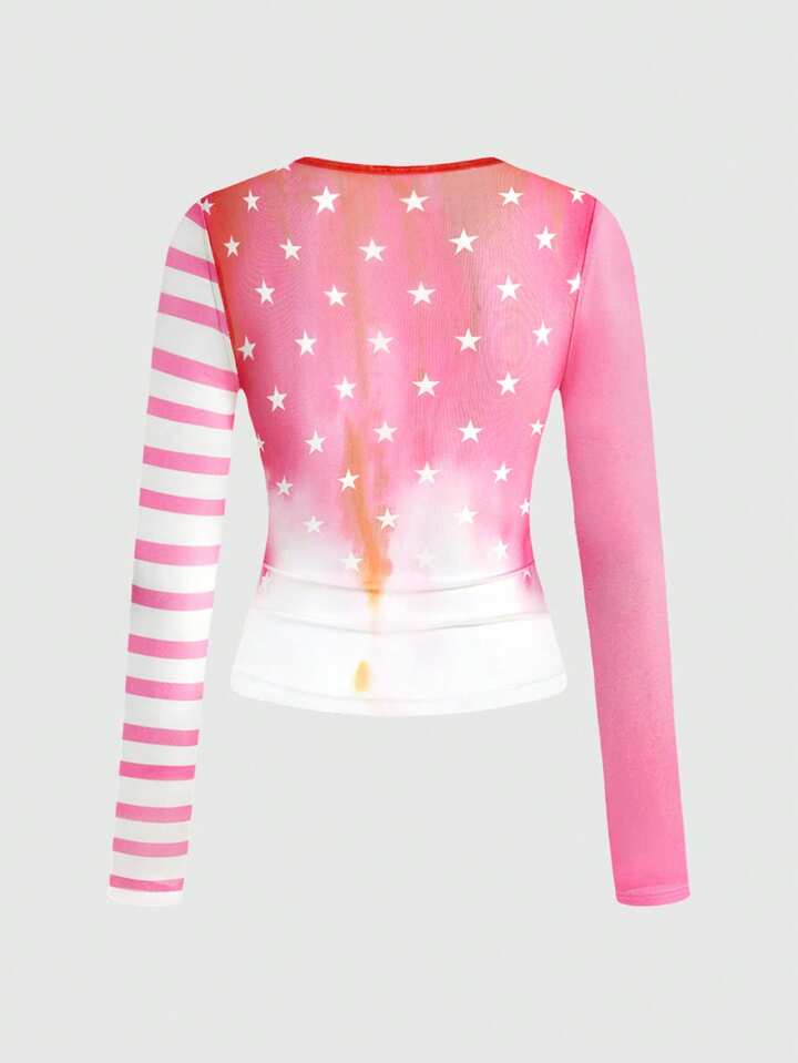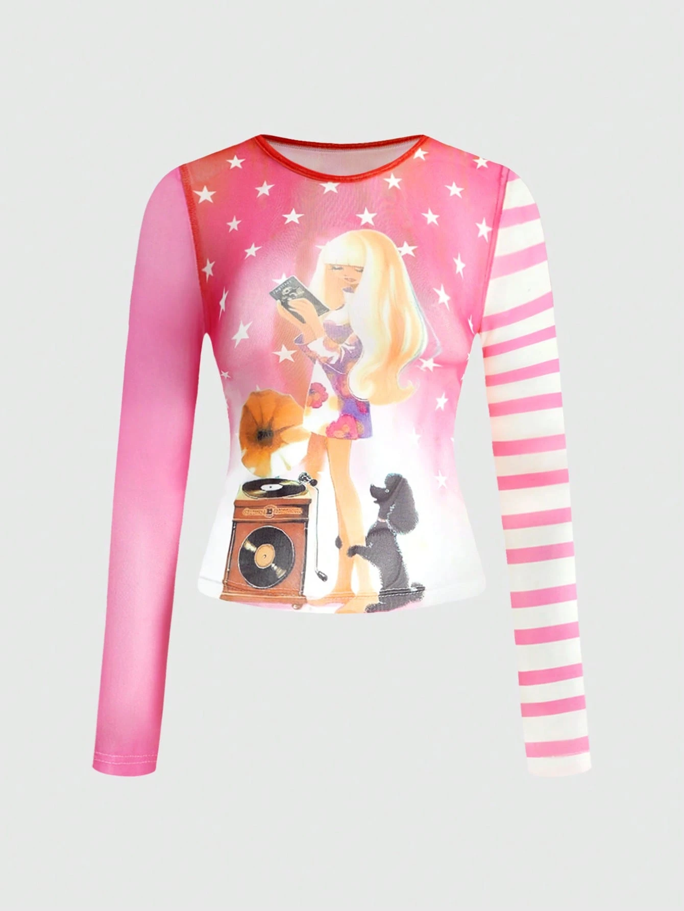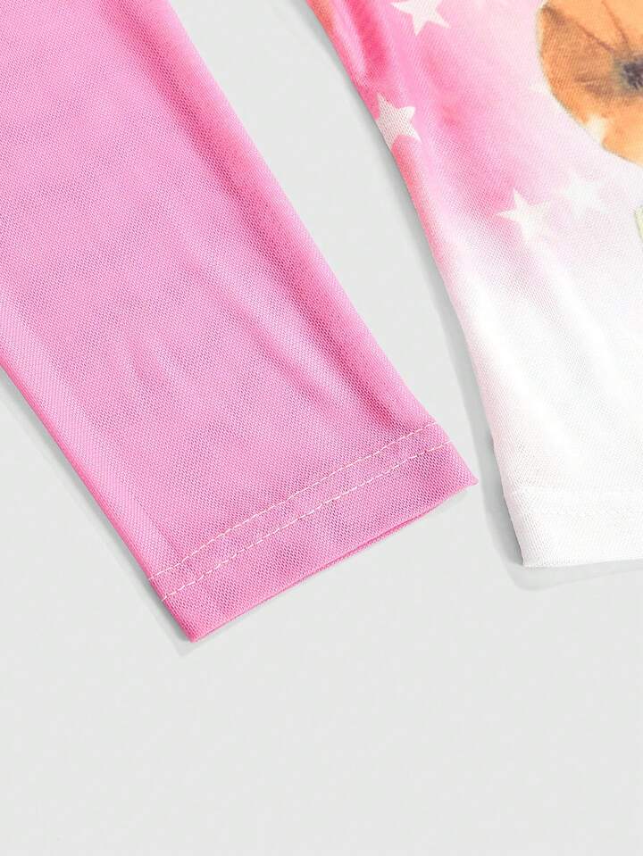 Kawaii T-shirt en maille à imprimé rayé tie-dye mignon de chiot Y2K pour femmes