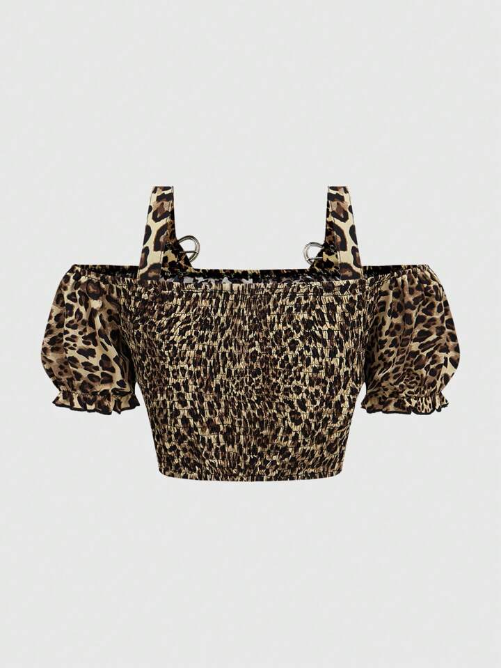 Kawaii Chemisier à manches bouffantes avec décoration de boucle en métal en forme de cœur à imprimé léopard Y2K pour femmes