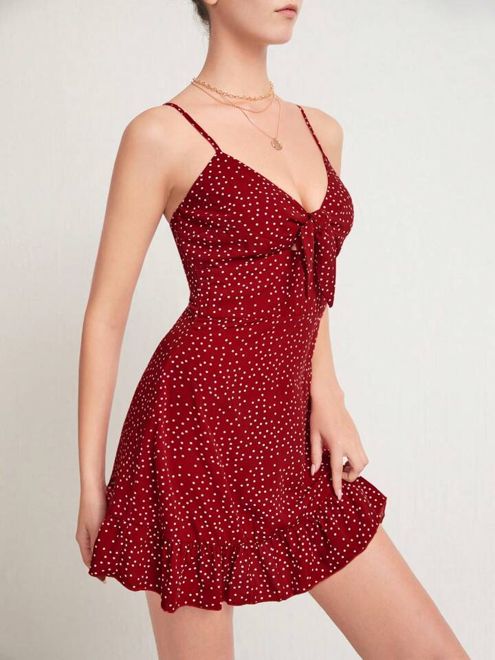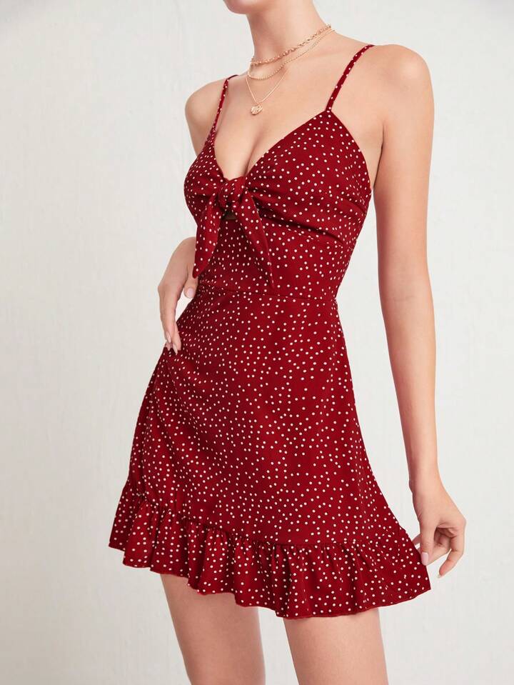 Robe à fines brides à nœud à pois à volants