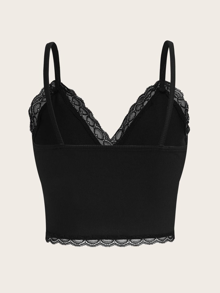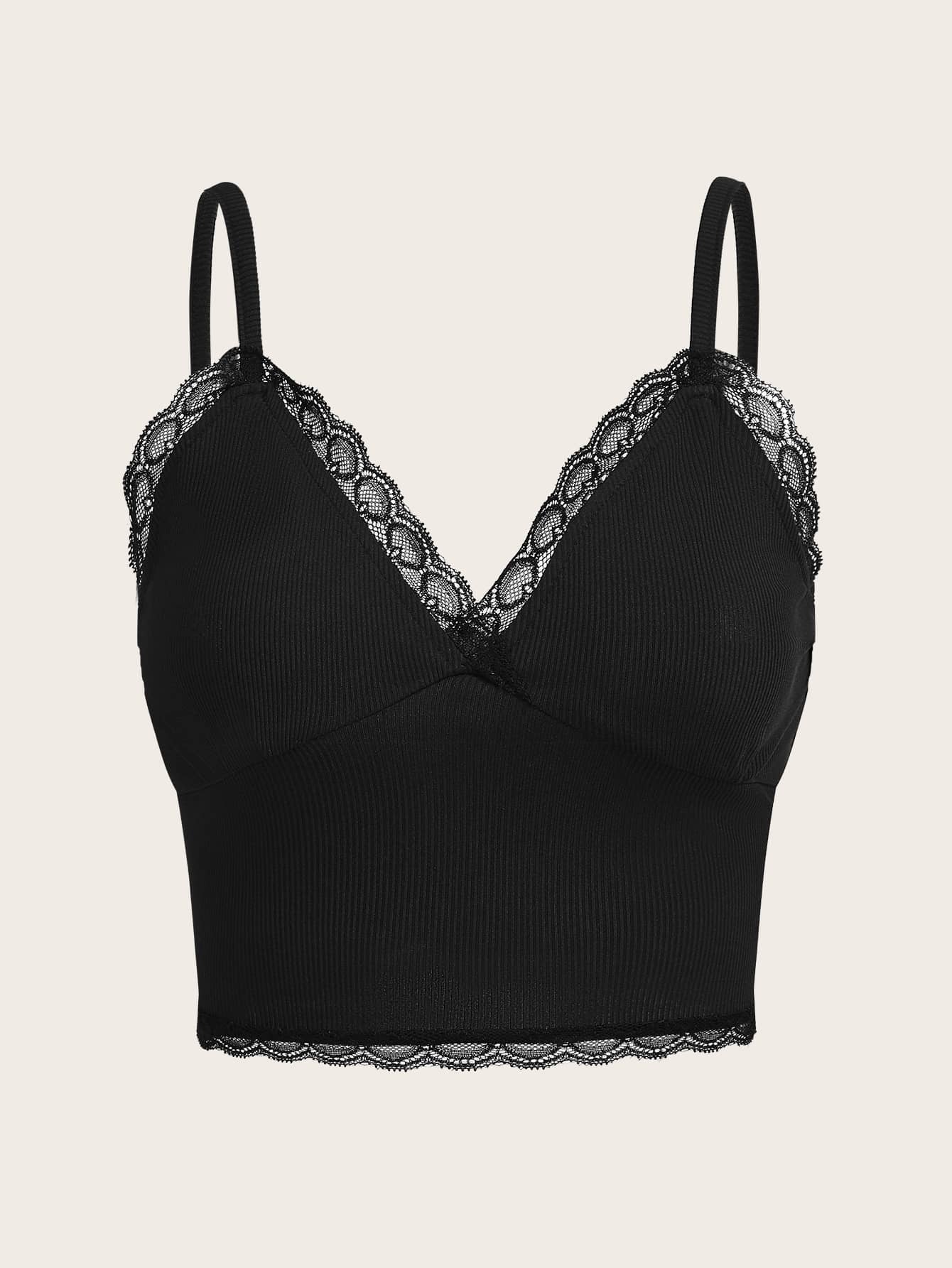 Top à fines brides à ourlet en dentelle