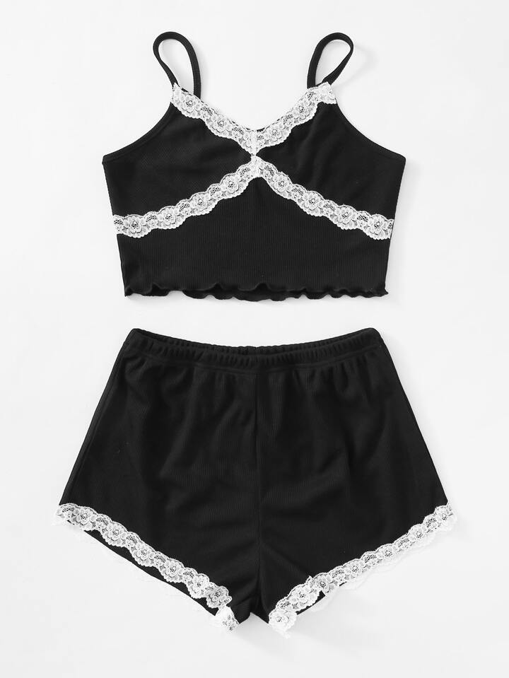 Ensemble de pyjama à ourlet en dentelle