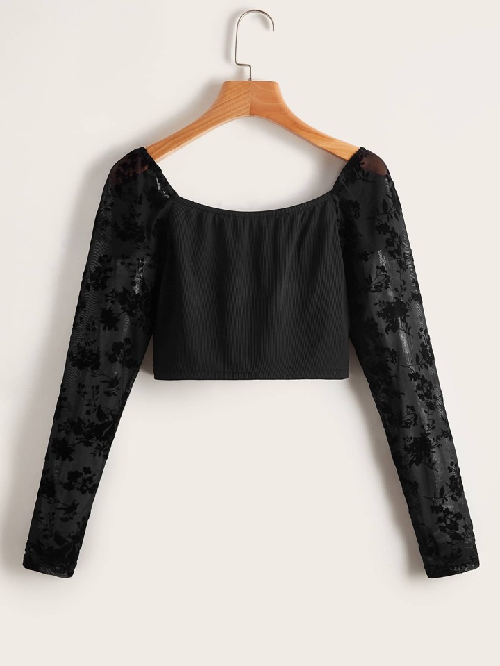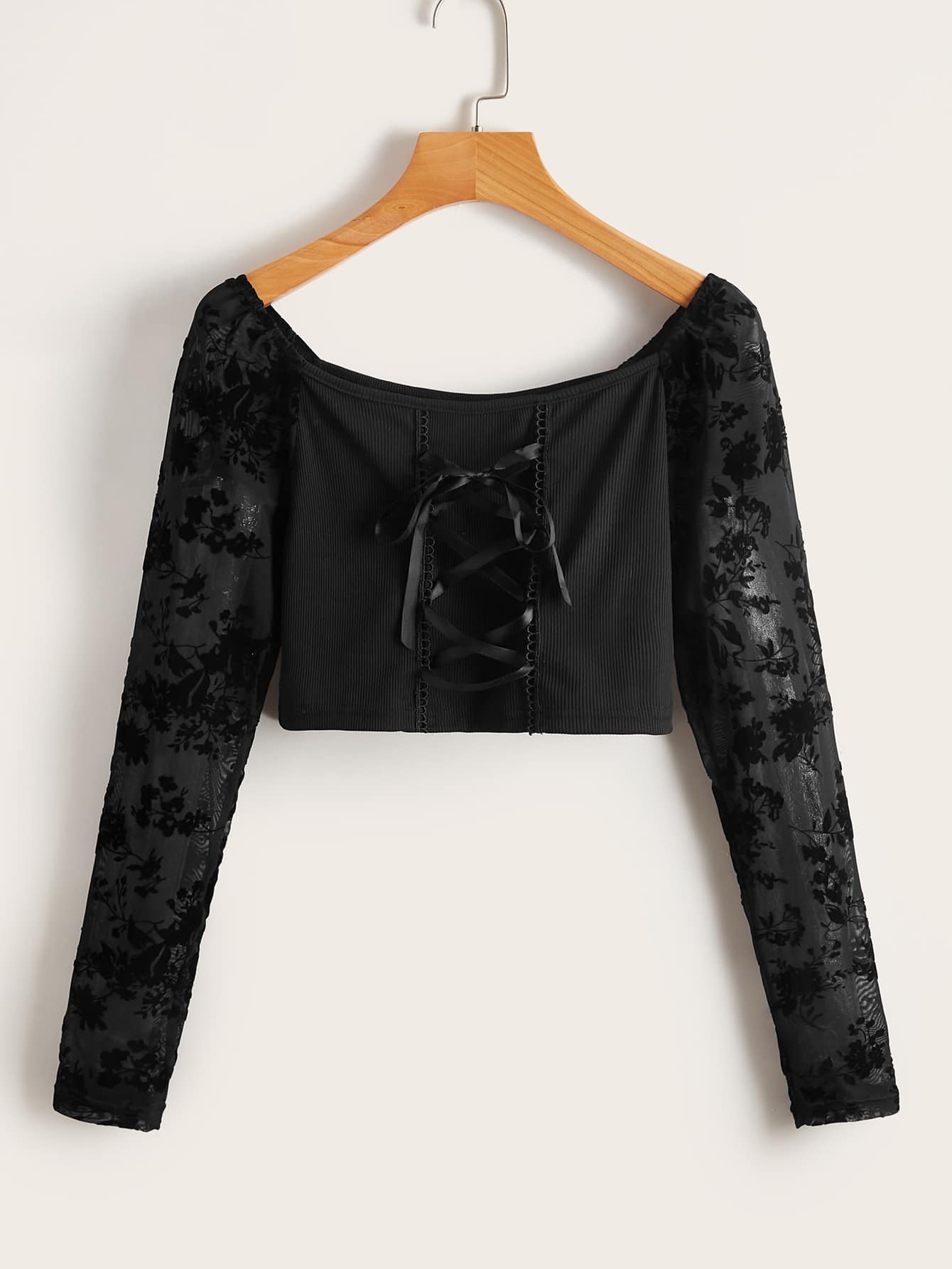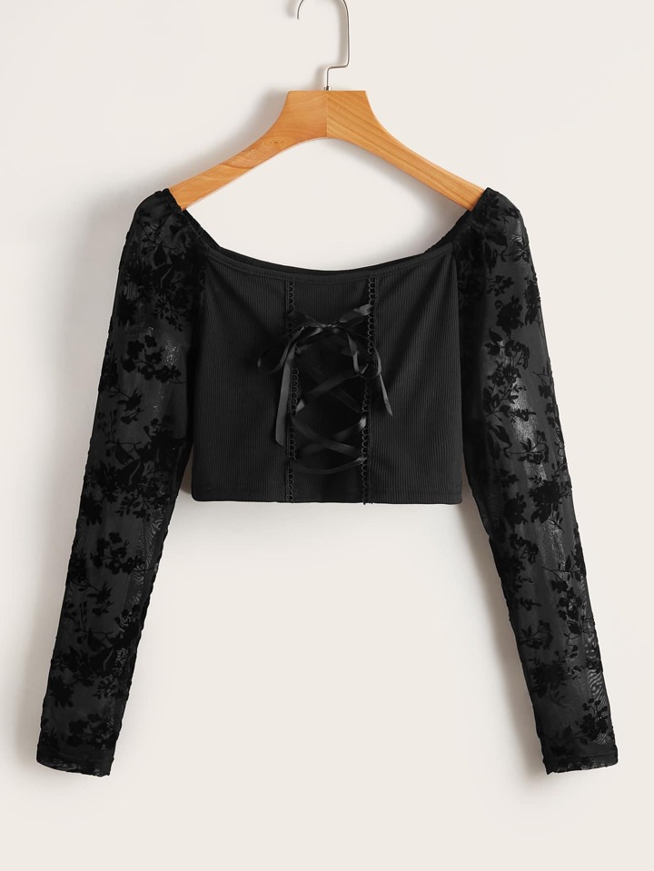 T-shirt court à lacets en dentelle