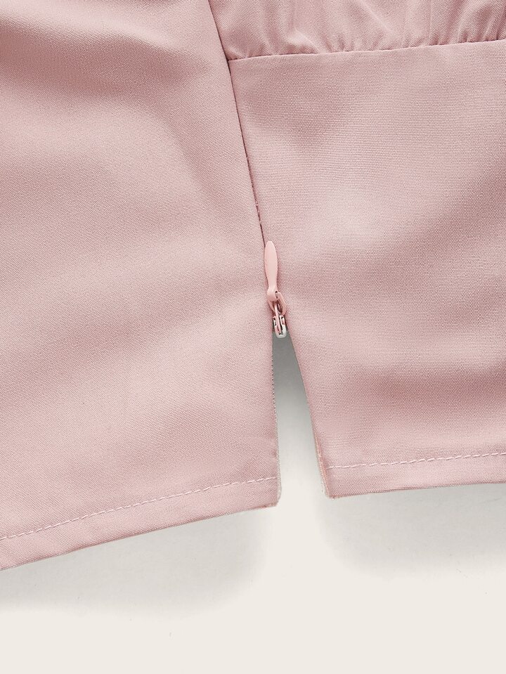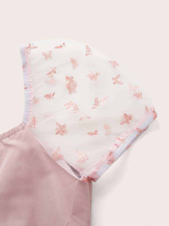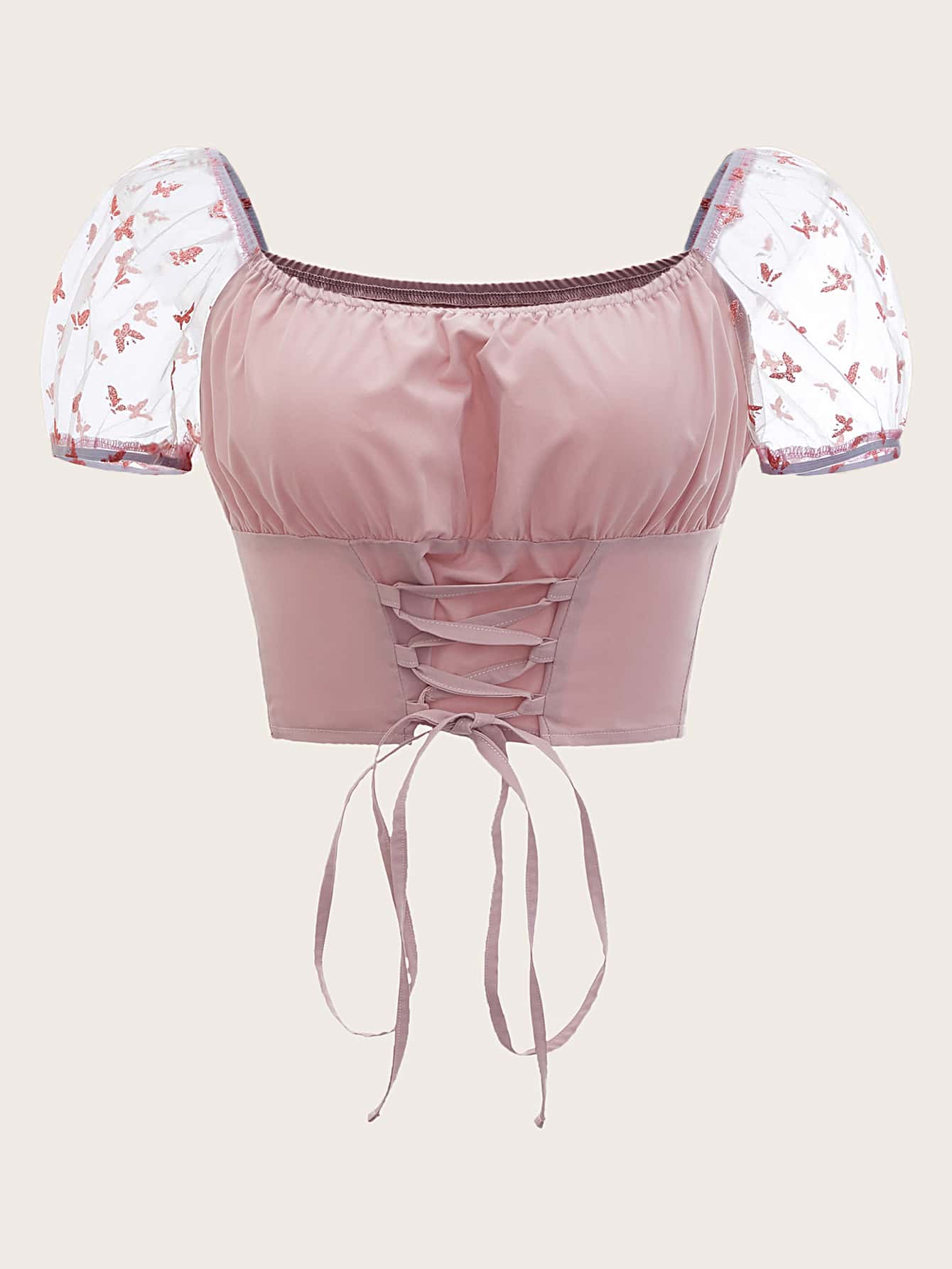 Top court à lacets à manches en tulle