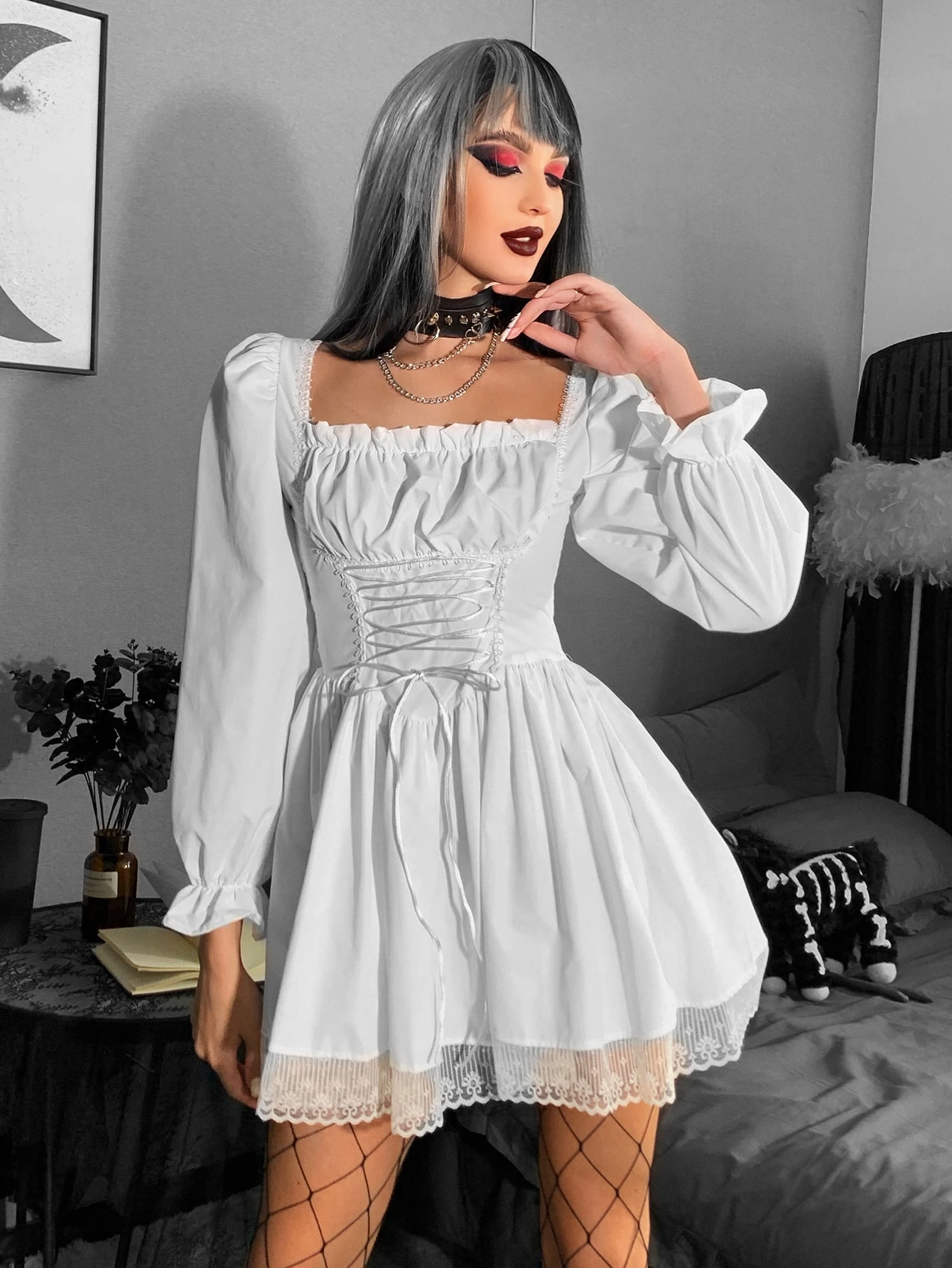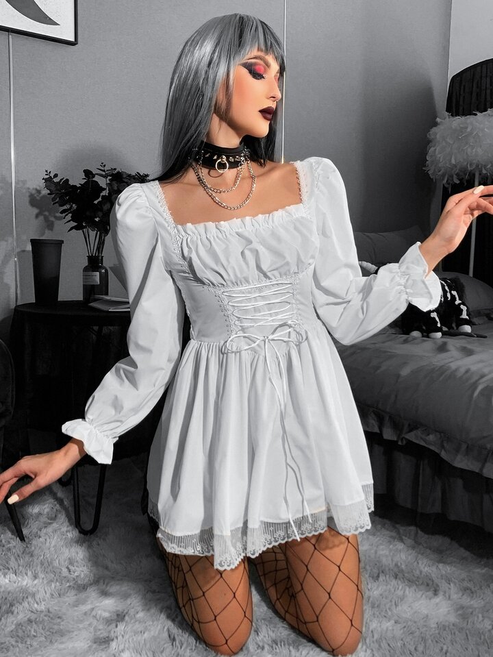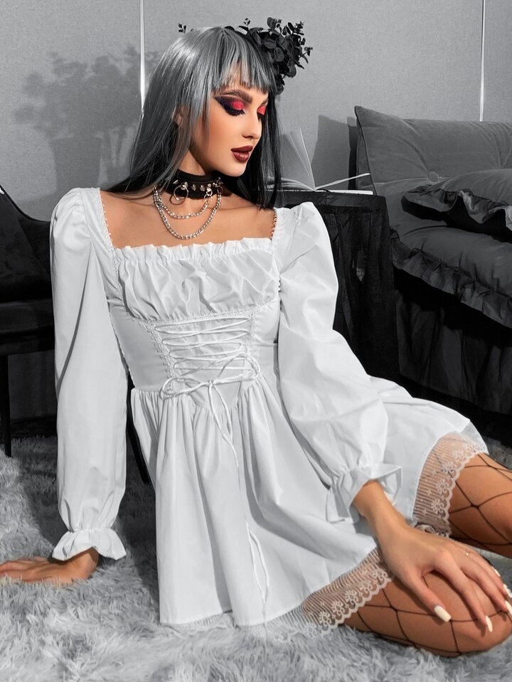 Robe à lacets à ruchés froncée avec dentelle