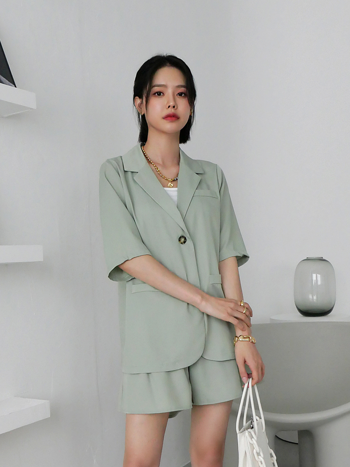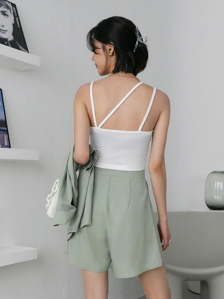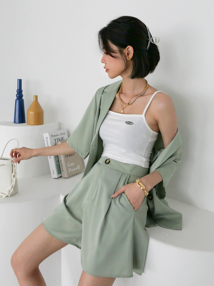 Blouse à col châle avec boutons à l'avant, avec short sans débardeur, ensemble 2 pièces d'été pour femmes