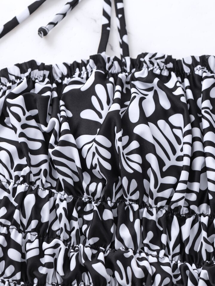 Tankini à volants imprimé feuilles pour l'été à la plage