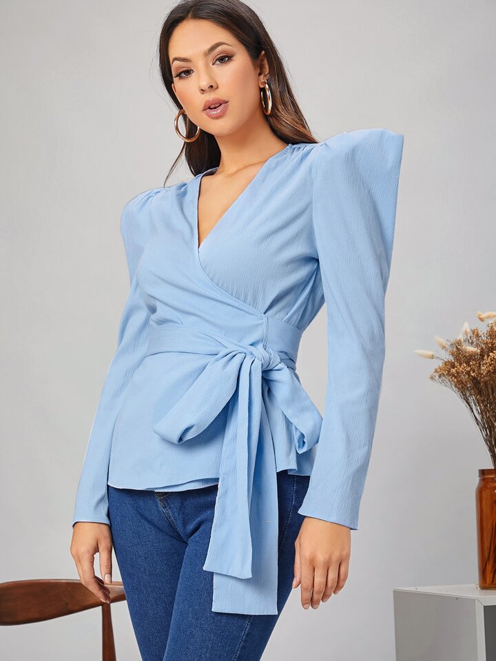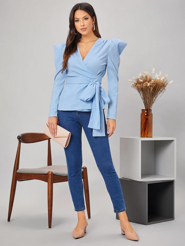 Blouse croisée avec manches gigot et nœud