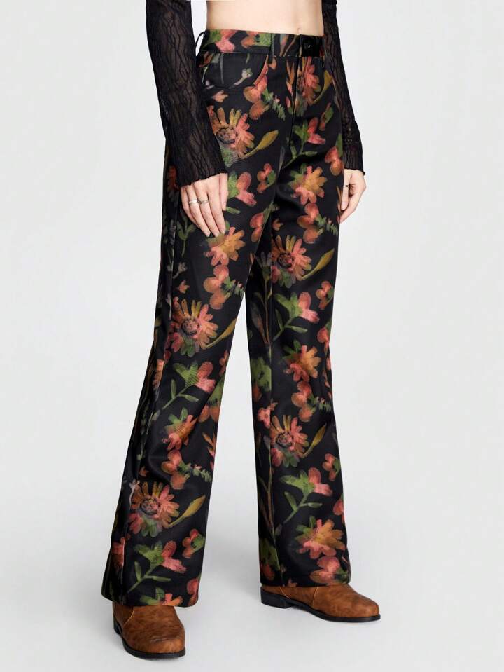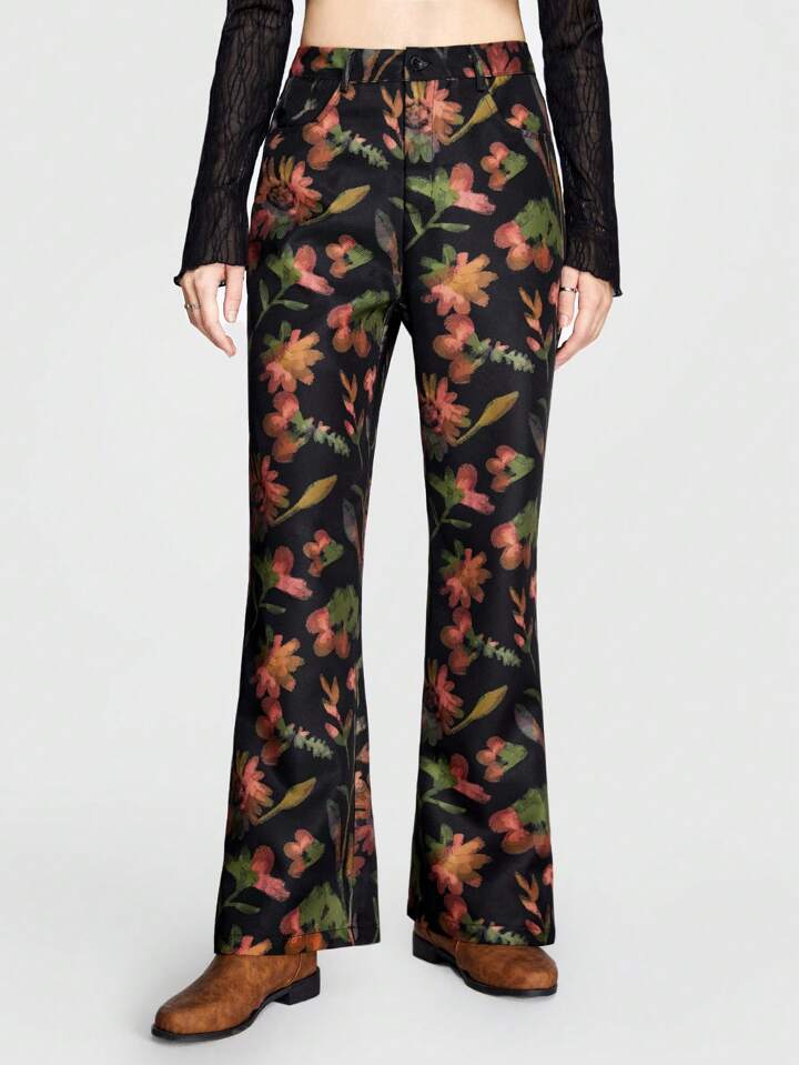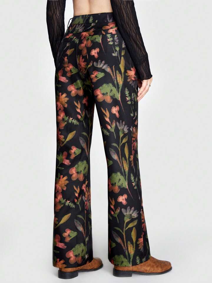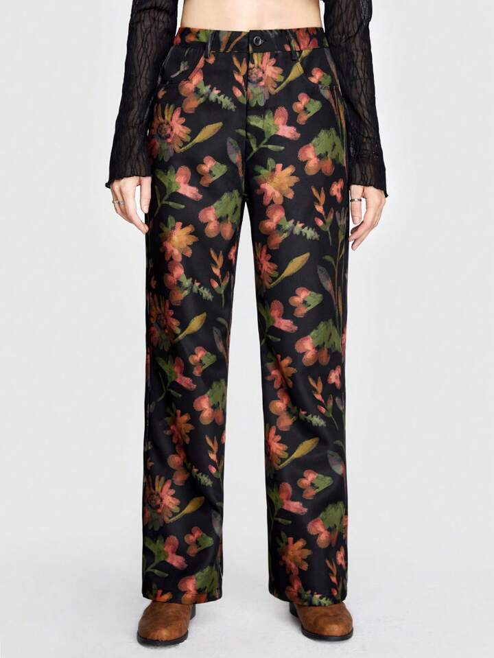 Debiesn Pantalon Droit À Imprimé Floral De Style De Loisirs