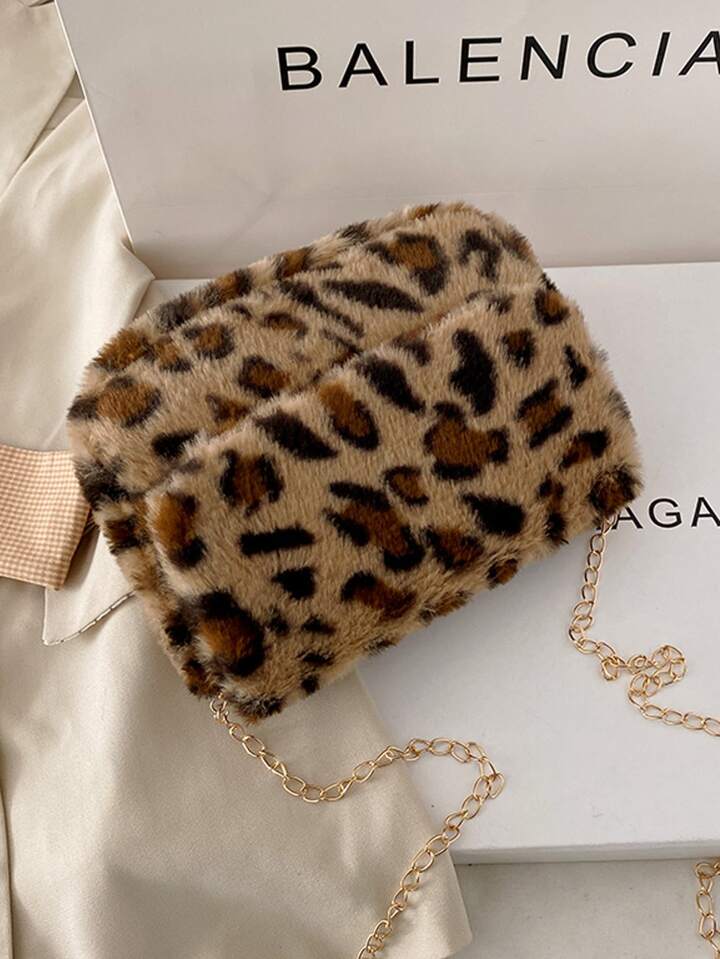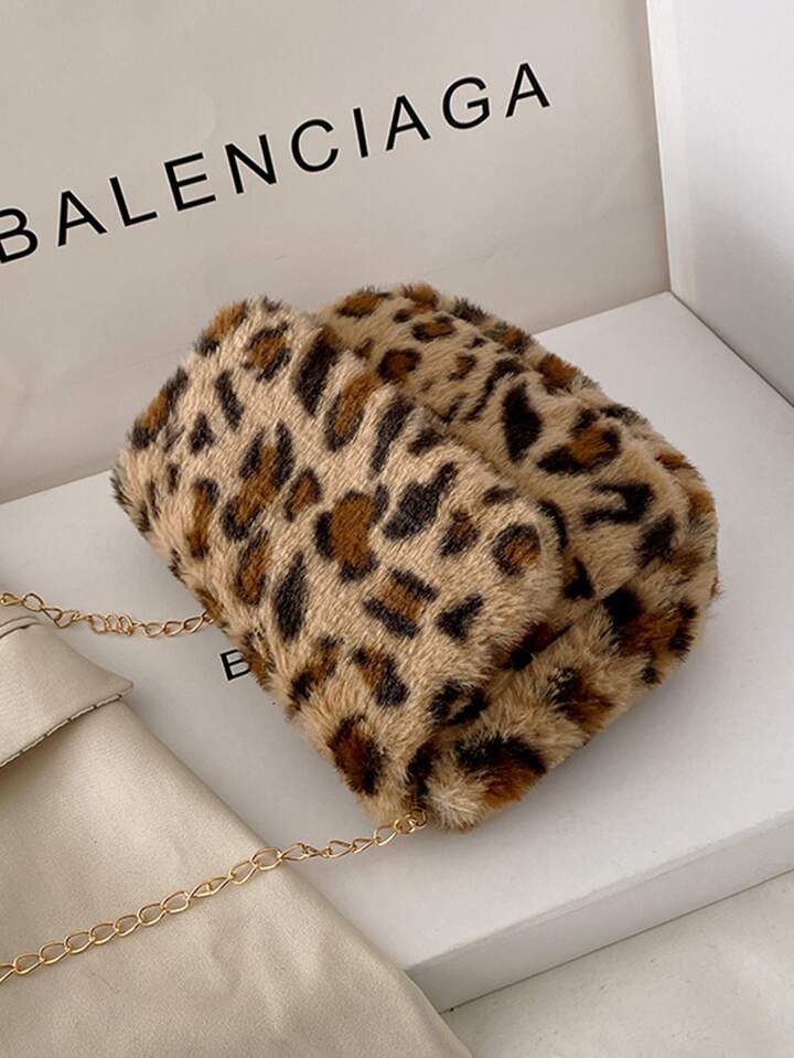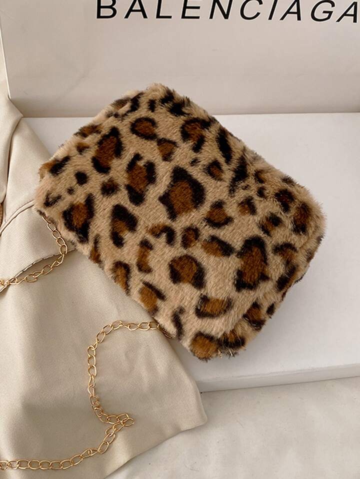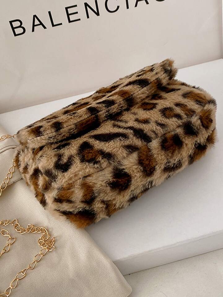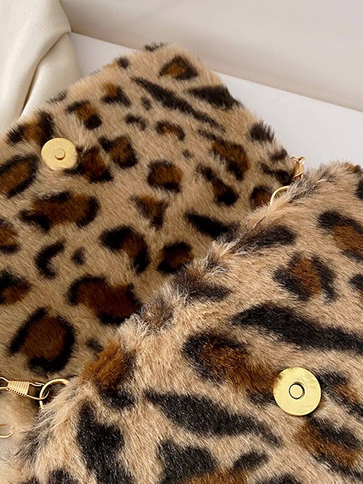Sac à bandoulière léopard en tissu duveteux