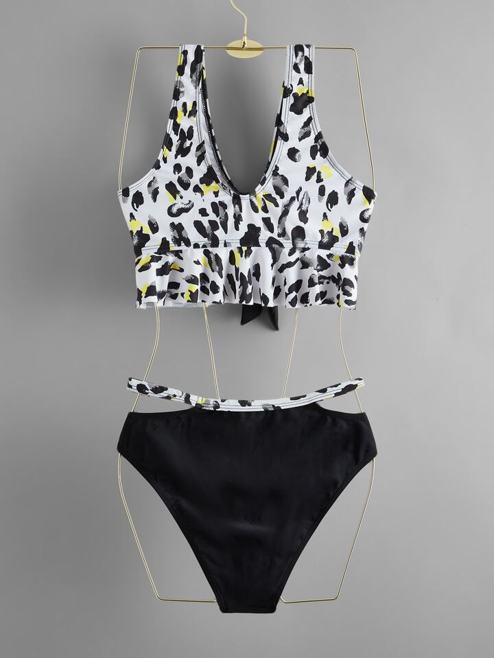 Ensemble de bikini imprimé léopard avec découpes, pour les vacances d'été à la plage
